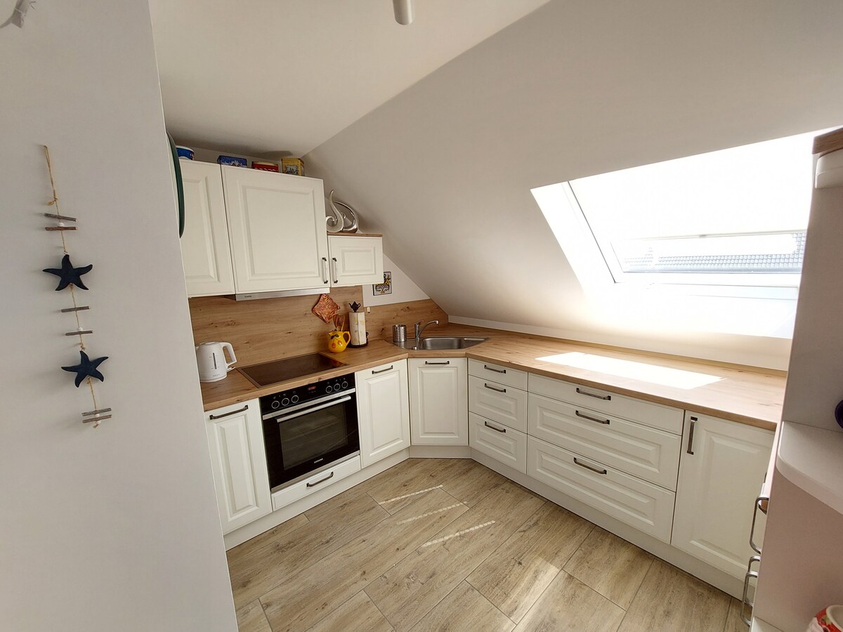 Lugnt och elegant – Välkommen till vår semesterlägenhet med rymlig terrass. Vårt boende rymmer 2 personer. Det stora vardagsrummet är utrustat med en öppen spis och en TV. Bredvid finns det lilla arbetsområdet med Wi-Fi. Det fullt utrustade köket lämnar inget övrigt att önska. Det är perfekt för mysiga grillkvällar, vandringar, cykelturer eller bara för att koppla av. Ren idyll...