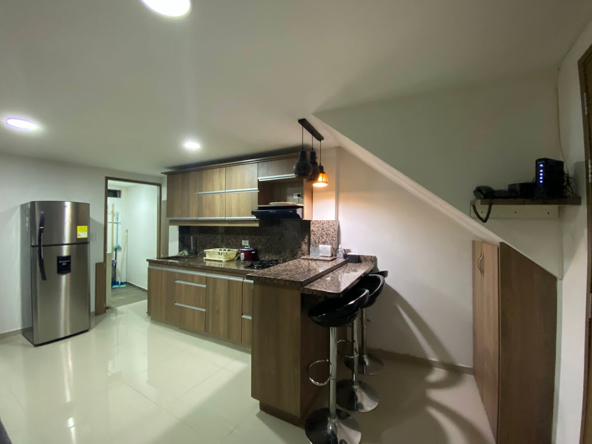 Njut av enkelheten i detta lugna och centrala ställe att bo på. Lägenheten är möblerad med alla bekvämligheter. Det ligger också nära restauranger, stormarknader, butiker och huvudparken. Kommunala och tunnelbana busslinjer (till Medellín) passerar några meter bort, vilket gör den idealisk för rörlighet i staden.