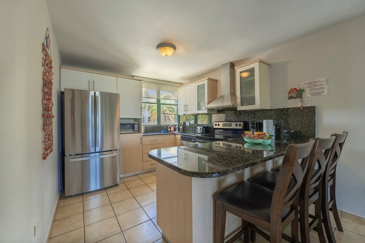 Boendet ligger 30 minuters bilresa från flygplatsen SJU och ligger i ett avskilt och privat lägenhetskomplex i Loíza, Puerto Rico. Det är den perfekta platsen för en avkopplande semester eller för att ha Zoom-möten med Atlanten som bakgrund. Under din vistelse kommer du att ha tillräckligt med tid för att njuta av stranden, ta ett dopp i poolen, arbeta (om du måste), använda grillen, titta på filmer och varva ner i en lugn miljö. Obs: En hyrbil är nödvändig för att ta sig hit och röra sig i området.