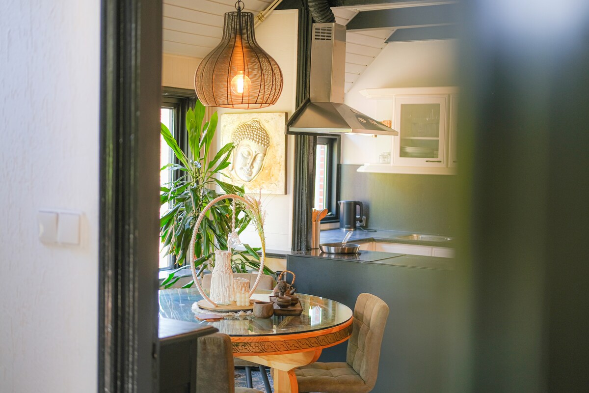 Sadla upp och upplev vilda västern i hjärtat av de nederländska skogarna. Koppla av på verandan eller kliv in i vår stuga, så kommer du att känna att du är med i en cowboyfilm. Inredningen är rustik och autentisk, med möbler i westernstil, cowboyhattar och andra element med western-tema. Vår skogsretreat är det perfekta stället att leva ut dina cowboyfantasier och uppleva vilda västern i hjärtat av de nederländska skogarna med en stor öppen spis utomhus för att rosta dina marshmallows.