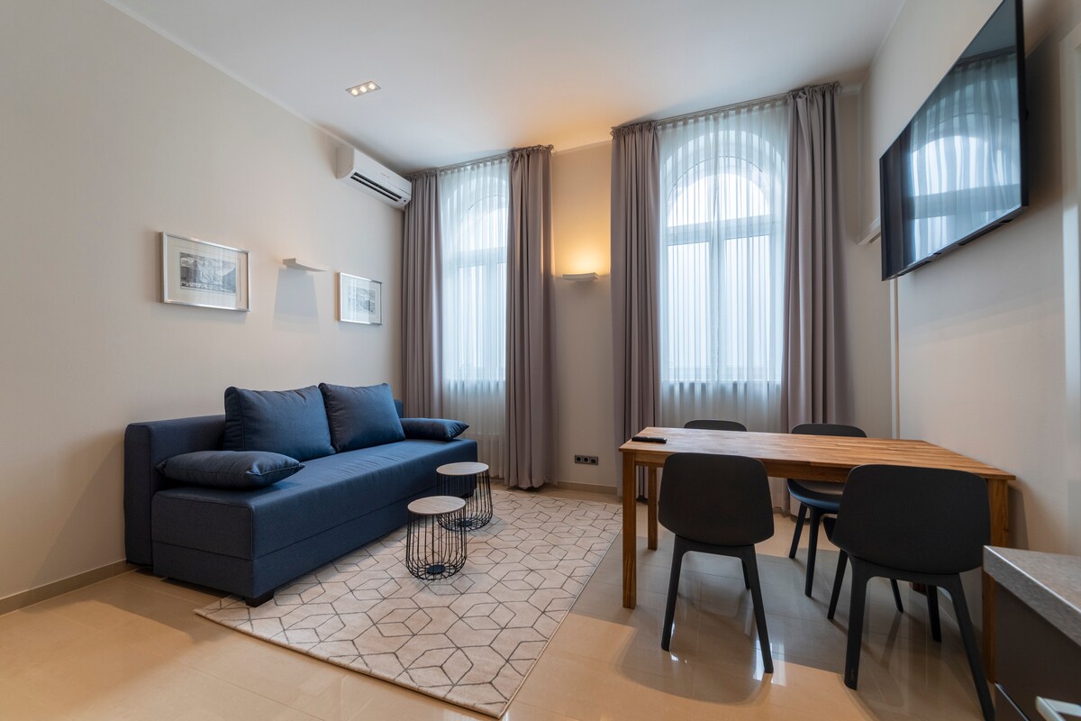 De nyrenoverade 25 kvadratmeter stora rummen består av ett sovrum med en 180x200 cm säng, en 16 kvadratmeter stor terrass och ett eget badrum. På byggnadens översta våning kännetecknas rummen av en härlig utsikt över staden. Rummen har ett minikylskåp och ett skrivbord som är perfekt för att arbeta på distans. Luftkonditionering ger gäster den ultimata komforten oavsett vädret. Varje rum rymmer upp till två personer.