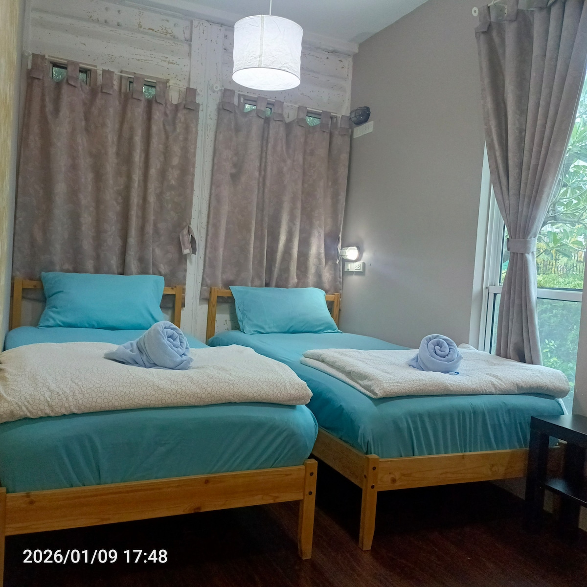 5 minuter till Elephant Arena Racecourse Nytt rum, Deluxe-rum, omgivet av naturen och beläget intill ett träsk på en sluttning. Bra väder, Mitsubishi luftkonditionering. Vattenvärmare, kylskåp, dubbelsäng, nära Supermarket Big C ligger i slutet av gränden, Robinson, Makro, HomePro, och sjukhus 5-10 minuter. 450 m bort i slutet av gränden. Det finns ett solbakat café. Det är ett annat naturligt alternativ, miljövänligt, vädret är svalt och eldflugor flyger runt.
