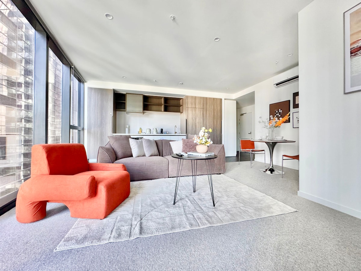 Lyxig och modern designad lägenhet, som är en bostadsmöjlighet utöver allt som ännu inte setts i Melbourne CBD. Gångavstånd till överallt, stormarknad precis där nere, restauranger runt omkring. Mest bekvämt läge i CBD. Vi tillhandahåller högkvalitativa sängar och madrasser, sängkläder på hotellnivå. Miele ugn och gasspis. Smart tv och bekväm miljö i vardagsrummet. 2 sovrum och 2 badrum, lämpliga för familj och vänner.