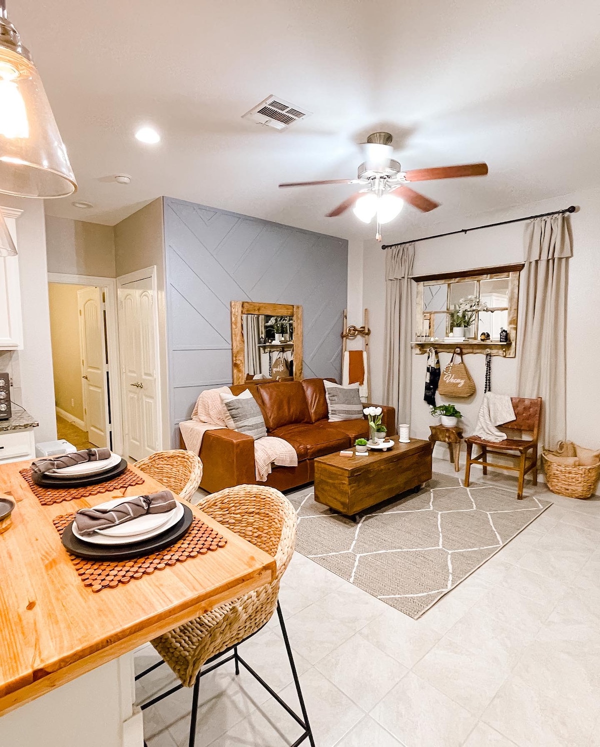 Recently renovated home with 4 spacious bedrooms and 2 bathrooms. Open Floor plan living/dining/kitchen area with all the comforts of home. Fully equipped kitchen with gas stove, wall mount pot filler, oven and microwave. Outside patio with propane grill, large table and Solo Stove fire pit and chairs. We are about 1 mile to Downtown Historic McKinney with lots of restaurants and shops. We are less than 1/2 mile to famous Hutchins BBQ!