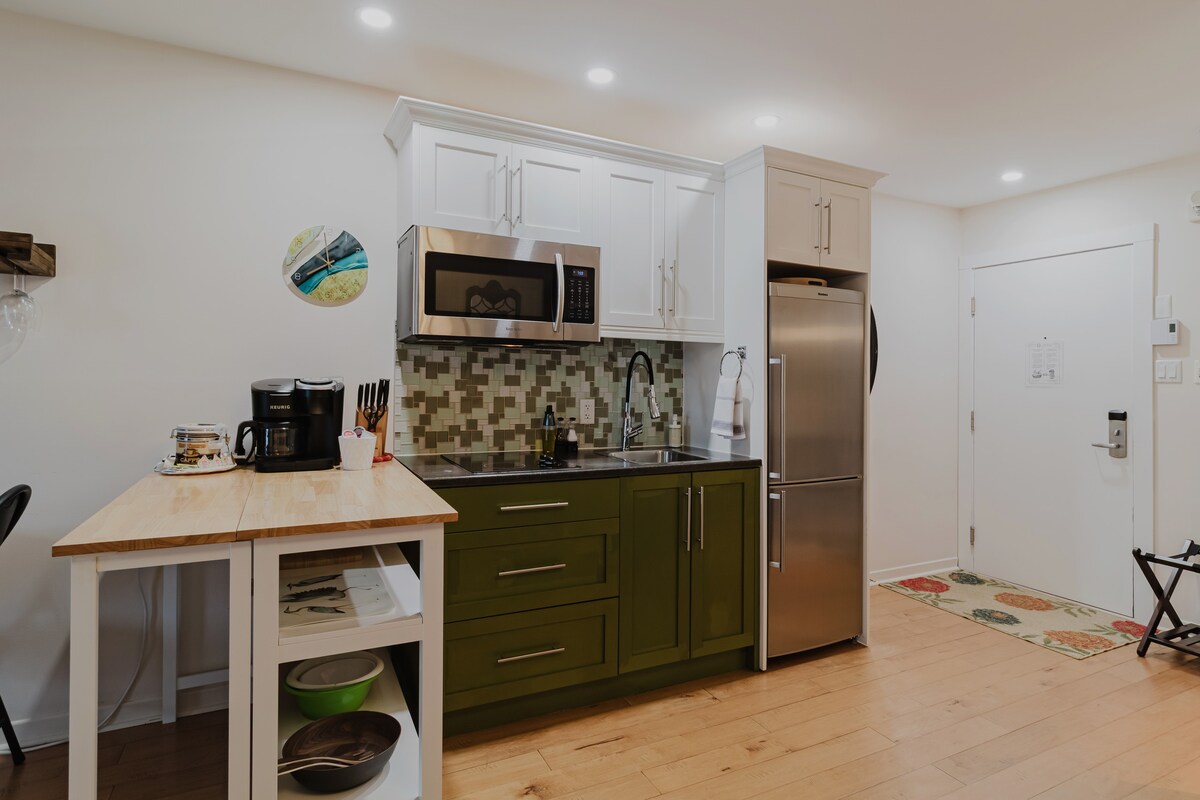 Ett mysigt bo 10 minuter från Mont-Orford Ski Resort och en timme från Montreal. Upptäck Estrie och den majestätiska nationalparken Mont-Orford medan du njuter av bekvämligheten i den fullt utrustade studion. Efter en dag utomhus, studion ligger på huvudgatan tillåter promenad tillgång till alla kaféer, restauranger, tjänster, teater (Le Vieux Clocher) och stranden av Lac Memphrémagog. Perfekt för en romantisk helg, en pied-à-terre för att upptäcka omgivningen.