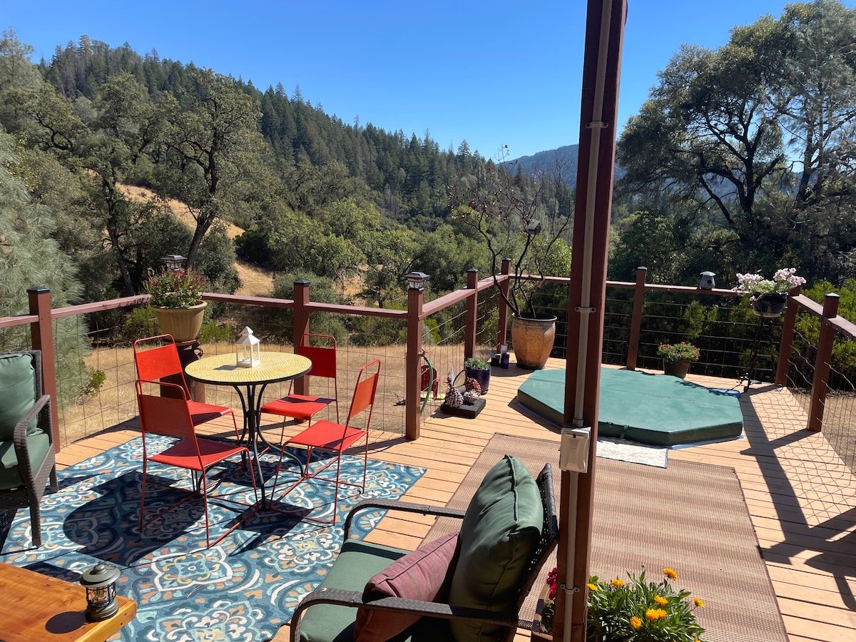 Bubbelpool och utsikt: "Secret Garden" Fort Bragg Cabin