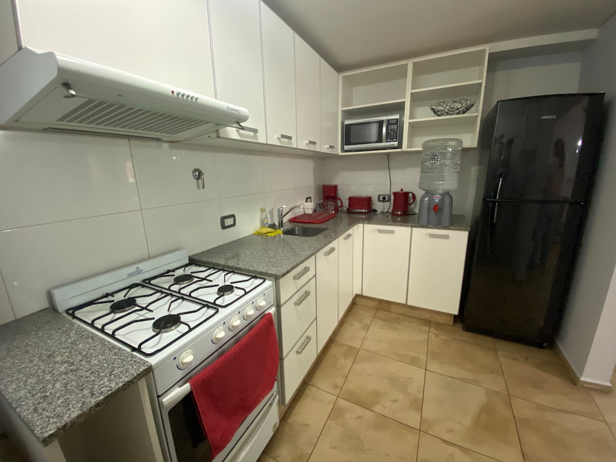 Ha en vilsam och trevlig vistelse i vår lägenhet i lyxiga Torre Leloir belägen i Quinta Sección, ett av de mest fridfulla grannskapen i Mendoza. Beläget alldeles intill den nya matdestinationen Mercado Moreno. Du kommer att njuta av en vacker lägenhet med en underbar utsikt över staden. WiFi-hastighet 500 Mbit/s för distansarbete. - Tvättmaskin i lägenheten (Andra enheter i byggnaden använder en gemensam tvättmaskin) - Bastu och jacuzzi - Säkerhet dygnet runt - Fullt gym - Simbassäng