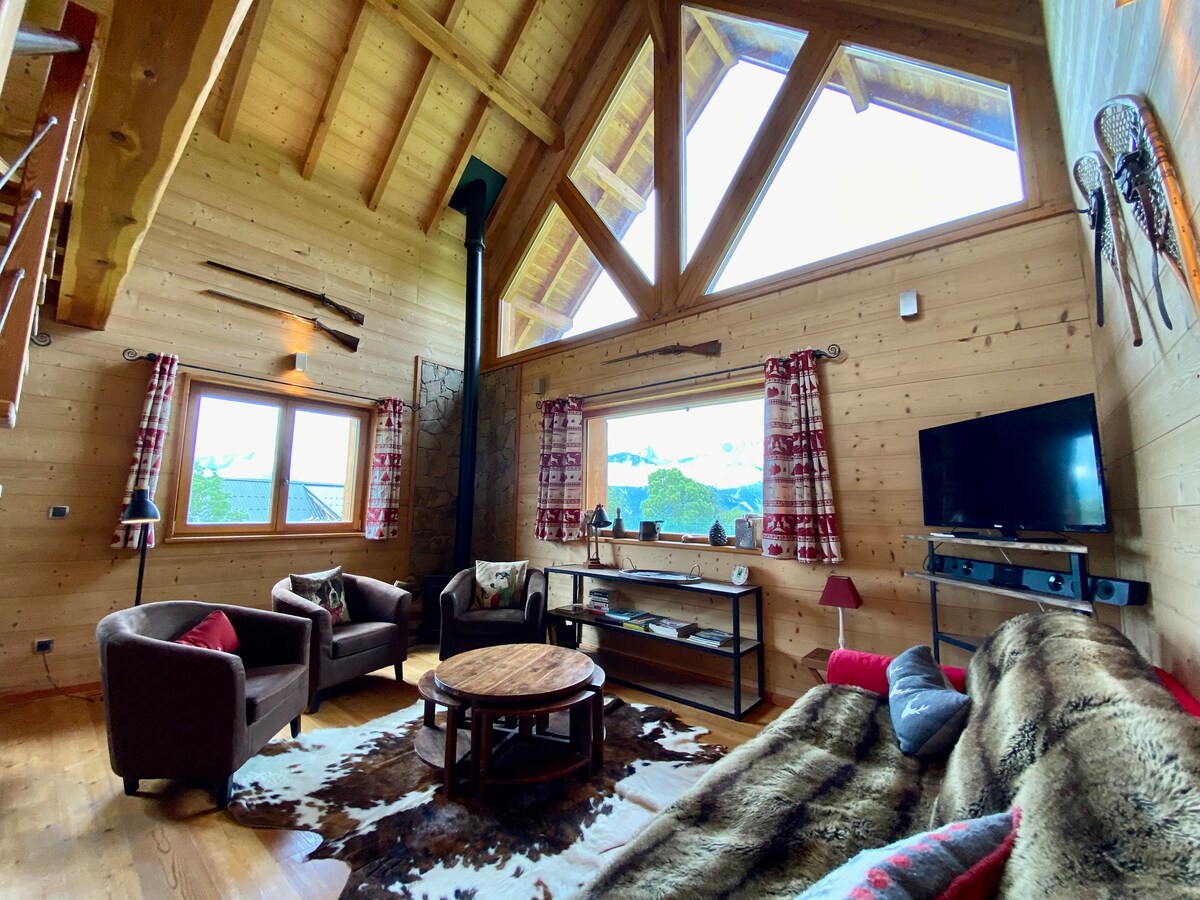 I en alpstuga, ett mysigt nytt boende, tillgängligt till fots via en liten stig. Mycket lugn, privat terrass och trädgård, syd/väst med exceptionell panoramautsikt över dalen. Fritidsbas och bycentrum 600 m promenad, allmän parkering. 1 sovrum, en cabriolet för 1 barn i huvudrummet, TV, Wi-Fi, badrum/toalett. Köket: spishäll, ugn, mikrovågsugn kyl/frys ugn, raclette maskin, mixer, vattenkokare kaffemaskin.