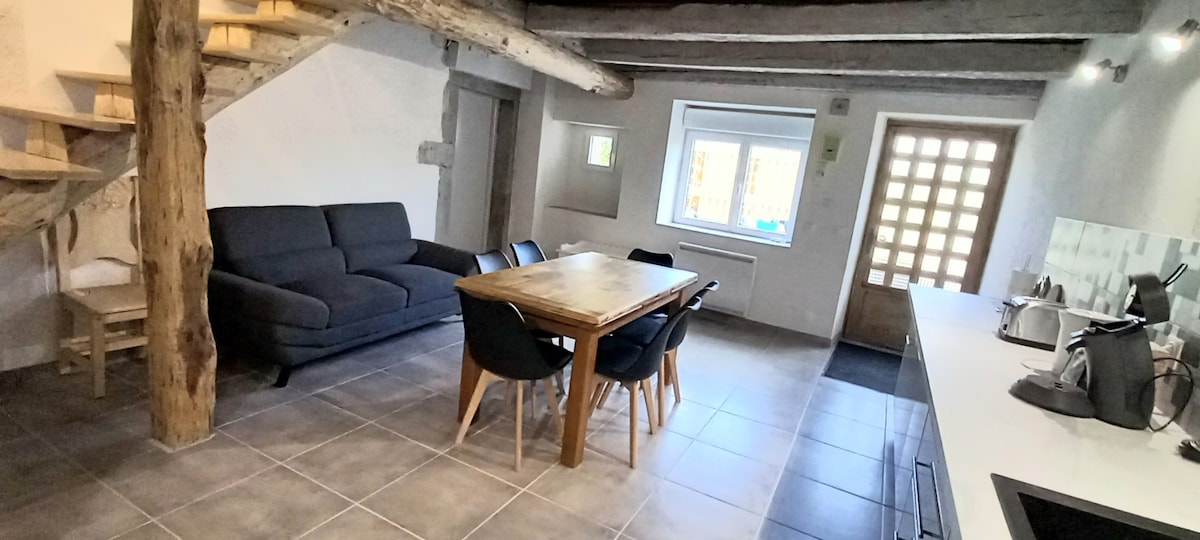🏡 Charmig stuga i en renoverad gammal bondgård 2 stora bekväma sovrum Stort modernt badrum Privat bastu för att koppla av efter en vandring eller skidresa ☀️ På sommaren: privat terrass med grillplats för alfresco restauranger. 🍂 På hösten: lyssna på hjortens vrål direkt från terrassen. Enkel 🚗 parkering: en lada för dina fordon 📍 Idealiskt beläget i hjärtat av en liten Jura by, bara 5 minuter från sjön Vouglans