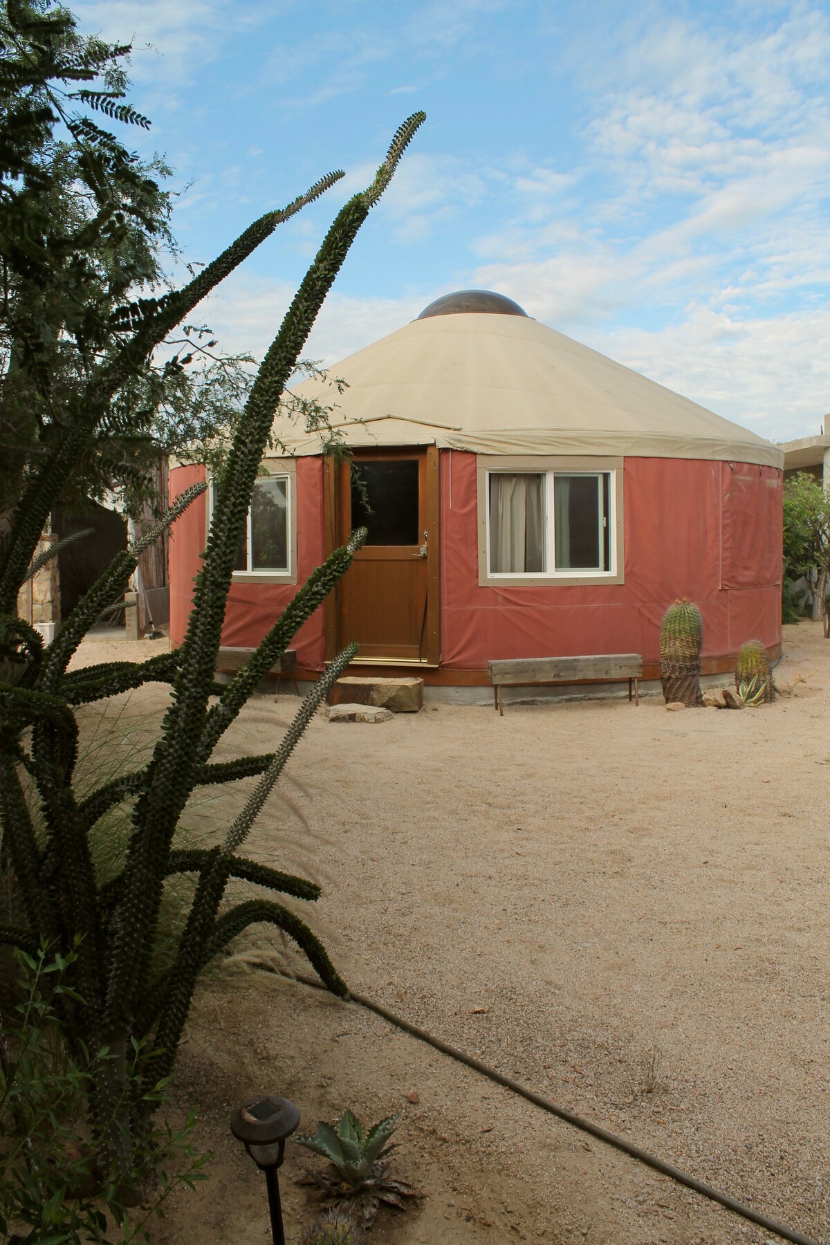 Välmöblerad jurta med vackra trädgårdar på en stor, inhägnad och säker fastighet. Direkt tillgång till stranden till en av de bästa stränderna i La Ventana, Southbeach. Enkel promenad till barer och restauranger. Utmärkt wifi. Delat kök utomhus med en Palapa på motsatt sida av fastigheten. Palapa kan också hyras. Se AirBNB-boende på samma plats.
