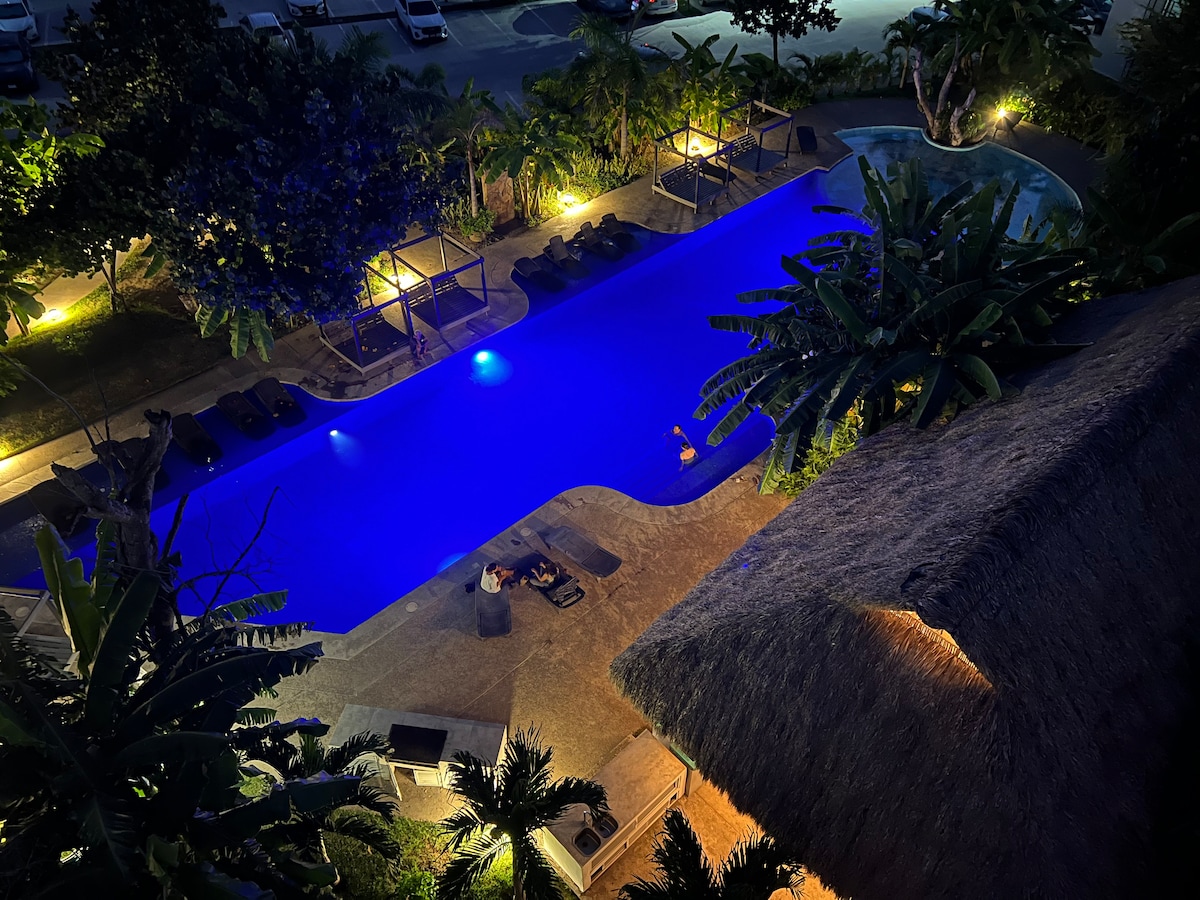 Vakna till ljudet av havet och en fantastisk utsikt från din privata balkong i denna moderna strandstudio i Las Glorias. Perfekt för par eller ensamresenärer, erbjuder det en king size-säng, snabbt WiFi, ett utrustat kök och direkt tillgång till stranden. Koppla av i poolen på 30:e våningen eller njut av bekvämligheter som på en resort: bubbelpooler, gym med mera. Minuter från Malecón och Versailles, men med den perfekta lugnet för att koppla av.