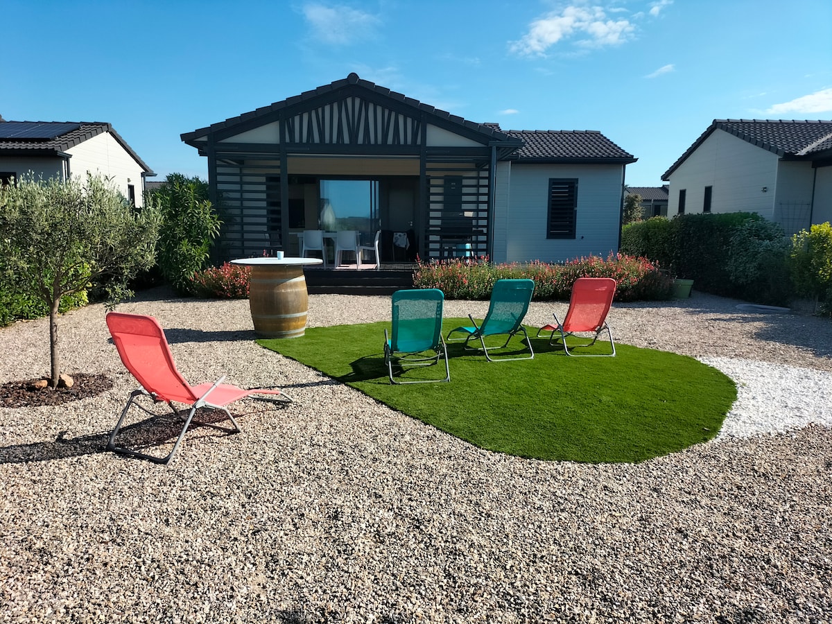 Välkommen till "Au p'tit chalet". Denna trevliga stuga på 42 m2 med sin stora altan i furu kommer att charma dig med sin lugn, sin fantastiska utsikt över vingårdarna och vår vackra Etang de Thau. Lämplig för dagdrömmar medan du njuter av produkter från Medelhavsområdet, här hittar du en fridfull plats där du kan ladda batterierna samtidigt som du är nära havet och badorterna. Perfekt läge för familjer. Nära Marseillan, Agde och Pézenas. Pool: från april till november.