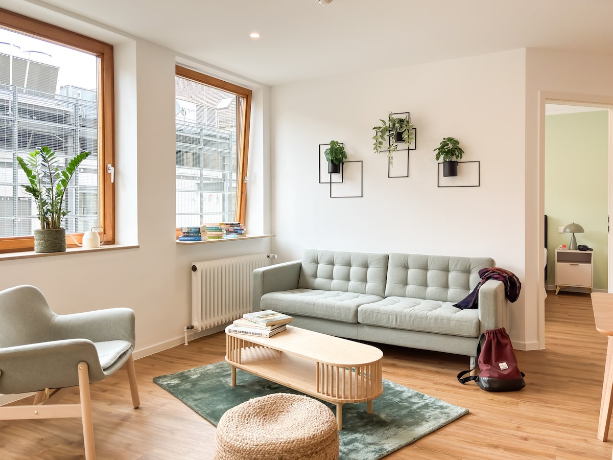 Du bor i denna eleganta lägenhet i ett centralt läge (Nürnberg, St. Sebald). Lägenheten har ett eget sovrum, en bäddsoffa i vardagsrummet och ett badrum med dusch. Höjdpunkten är verkligen terrassen med utsikt mot innergården. Plats Du befinner dig mitt i Gamla stan och ändå på en lugn sidogata. Lägenheten är lätt att nå med bil och kollektivtrafik. På några minuter är du direkt på huvudmarknaden och alla viktiga sevärdheter.