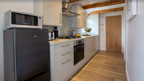 Stables är en ombyggd annex har en tilldelad parkeringsplats, (Det finns utrymme för 2:a bilen i närheten) Stables har en 12 fot kvadratisk uteplats, på baksidan. Stables har ett sovrum med dubbelsäng och eget duschrum. Dessutom finns en bäddsoffa i loungen som är lämplig för 2 små barn eller en vuxen. Vi välkomnar upp till två medelstora eller små hundar. För större hundar, vänligen fråga. För föräldrar med spädbarn tillhandahåller vi en barnstol men det finns inte riktigt tillräckligt med utrymme för en spjälsäng.