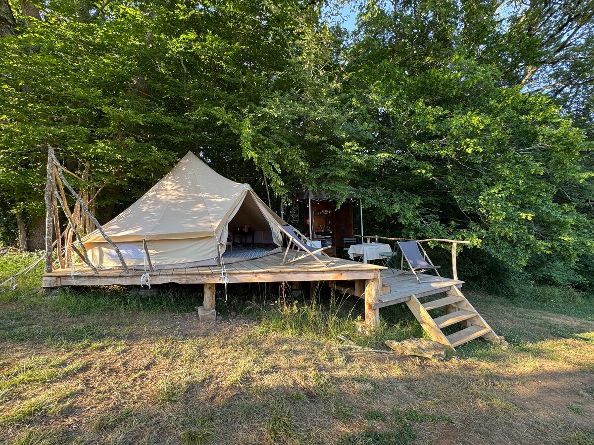 DUBBELTÄLT FÖR 4 PERSONER MITT I NATUREN! Kom till skogsmarken i hjärtat av vår 10 hektar stora gård för att njuta av naturen i lugn och ro. En kokong värdig dina nätter väntar på dig. Våra Airbnb-vistelser är "fullständiga lantliga alternativ": - Sängkläder tillhandahålls -Handdukar tillhandahålls - privat torr toalett - Städning ingår - Rundtur på gården (* kontakta oss för frukost)