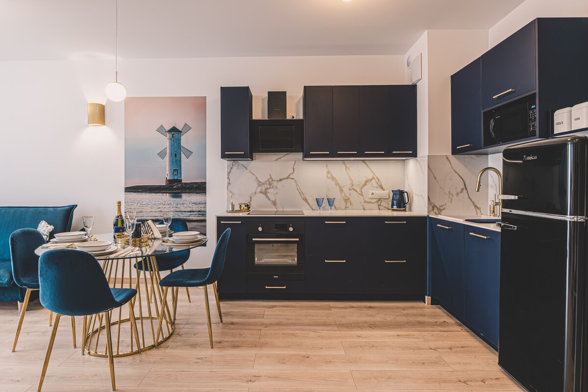 Apartament Linterna to elegancka nadmorska przystań w nowoczesnym kompleksie Let's Sea Gąski, zaledwie 100 metrów od plaży. Przeznaczony dla 4 osób, stylowo urządzony apartament zachwyca niebieskim zamszem, złotymi akcentami i przestrzenią stworzoną z myślą o komforcie. Zamykana sypialnia z dużym łóżkiem, salon z miejscem do pracy zdalnej, internet i miejsce w garażu. Idealny na rodzinny wypoczynek lub romantyczny weekend nad morzem, z dostępem do basenu, jacuzzi, sauny i kortu tenisowego.