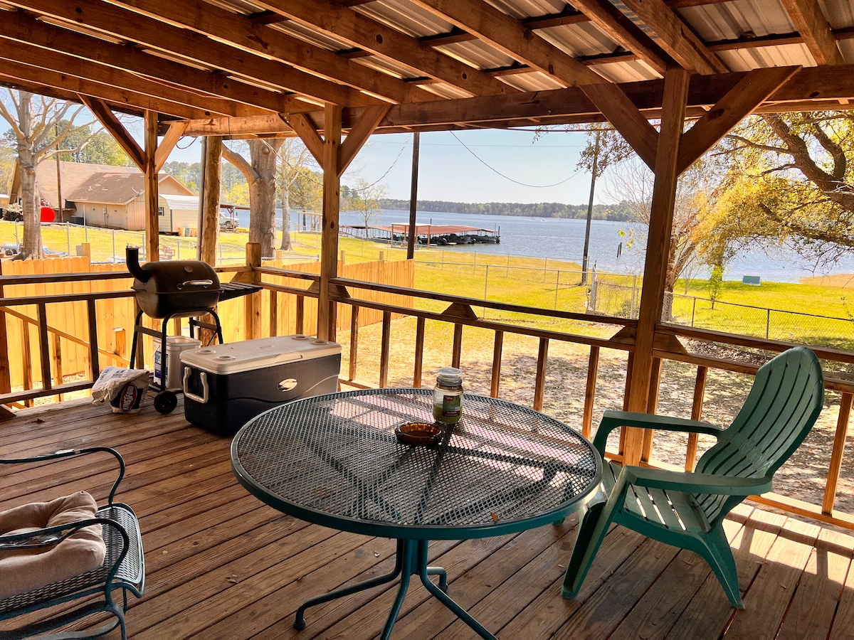 Fiske & båtlivets dröm! Båtramp inom gångavstånd, gott om parkering för många fordon & släpvagnar. Täckt brygga med el, och djupvattentillgång till Toledo Bend i skyddad vik perfekt för båtliv, tubing, kajakpaddling och paddle boarding. Uppdaterat och rymligt boende med 3 sovrum allt du kan behöva, inklusive höghastighets, pålitligt internet och 3 smarta TV-apparater. Njut av kaffe och utsikt från en privat balkong vid vattnet och båt och fisk från den privata båtbryggan. Det är en SHORE THING 😊