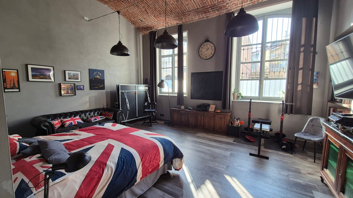 Rymlig och modern vindsvåning, utrustad med Wi-Fi och perfekt även för arbete, ligger bara några minuters promenad från centrum, nås från Porta Nuova och Porta Susa station, lätt att nå med bil och det finns gratis parkering i området. Loftet har ett kök utrustat med alla hushållsapparater, ett stort vardagsrum med TV och en säng, ett badrum med dusch och ett loft med en säng och ett fotbollsbord. Den ligger i ett lugnt område men nära centrum och många restauranger, barer och stormarketer.