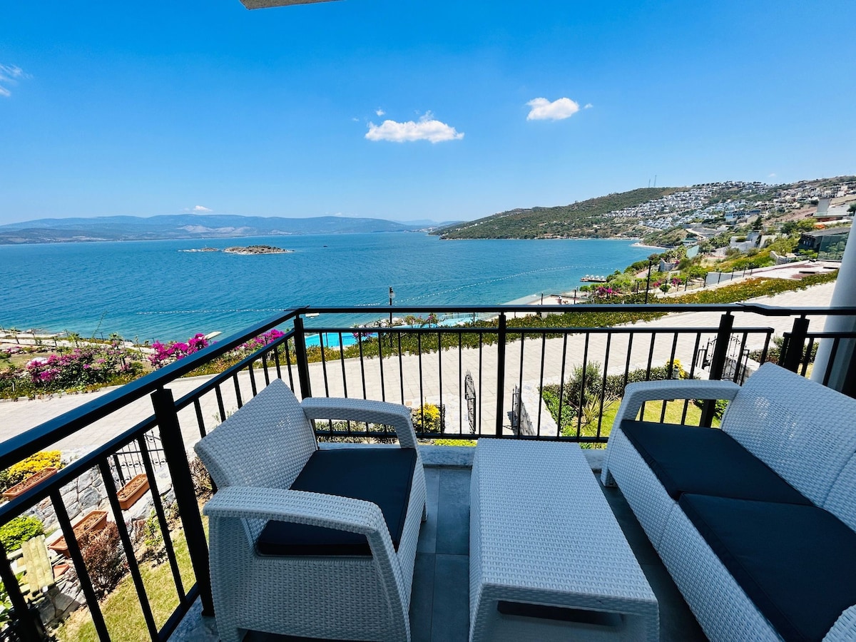 VĂ„rt hus i Bodrum Milas Bosphorus ligger 100 meter frĂ„n havet. Du kan nĂ„ Bodrums centrum pĂ„ 30 minuter med bil. Det Ă€r en hygienisk lĂ€genhet med egen strand, skytteltrafik pĂ„ plats, idrottsplan och full havsutsikt. Du kan promenera till stranden pĂ„ 5 minuter utan bil. 2. VĂ„r 1+1 lĂ€genhet pĂ„ golvet har en dubbelsĂ€ng och 2 bĂ€ddsoffor. Det ligger nĂ€ra flygplatsen,mataffĂ€ren, marknaden. Du kan njuta av solnedgĂ„ngen pĂ„ balkongen. WiFi finns.đ±đ¶HUSDJUR ĂR INTE TILLĂ TNA.