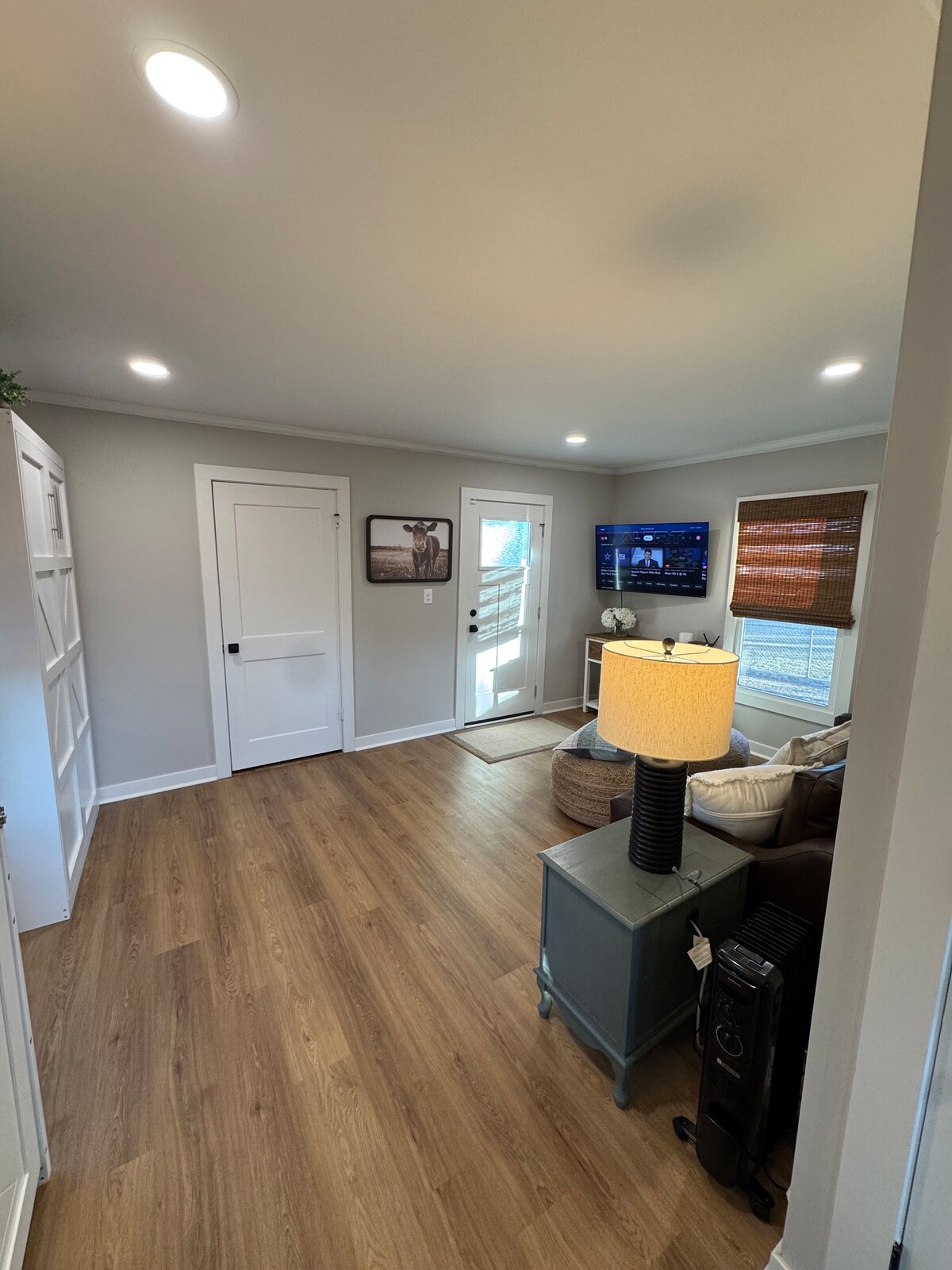 Koppla av med hela familjen i detta fridfulla boende på landet. Det stora sovrummet har en dubbelsäng, TV och garderob i full storlek. Det andra sovrummet har en Queen size säng och en Twin size säng Badrummet har dusch/badkar Tvättstugan är utrustad med tvättmaskin, torktumlare, strykjärn och strykbräda Fullt utrustat kök Njut av simning i poolen, vandringsleder i skogen 10 minuters bilresa till den berömda Chicken Shack för lite god mat och bra atmosfär • Queen luftmadrass tillgänglig