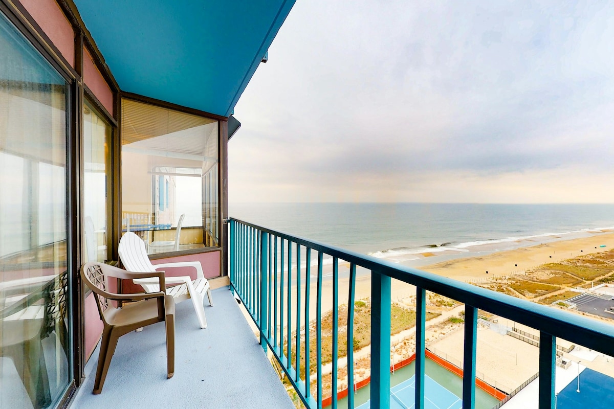Underbart kök och huvudområden renoverade mars 22. 2 sovrum, 1,5 badrum, direkt lägenhet vid havet på 7:e våningen i Golden Sands byggnad i OC. Det är rent, bekvämt, elegant, fullt av bekvämligheter och med utmärkt läge. Bra WiFi, 3 TV-apparater med kabel, DVD, välfyllt kök och fantastisk havsutsikt med stor balkong. Översta våningen har inomhuspool, fitnessrum, bastu och spelrum. Utomhuspool, tiki bar, presentbutik, marknad och deli öppet väder tillåter i maj, sedan dagligen på Memorial Day.