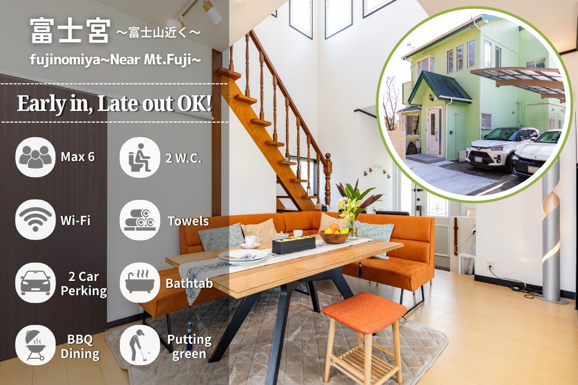 Fuji Villa är ett privat hyreshus på en kulle med utsikt över Mt. Fuji. Det är ett speciellt utrymme där du kan koppla bort vardagen i ett lugnt läge omgivet av naturen. Det finns en närbutik ca. 5 minuter bort med bil, och det är också bekvämt att kunna skaffa vad du behöver omedelbart.Känd som porten till Mt. Fuji (Fujinomiya-rutten), detta område är fullt av familjevänliga attraktioner såsom Asama Taisha, Shiraito Falls, Makai Ranch och Fuji Safari Park. Tillgång till de fem sjöarna Fuji och Gotemba är också bra, vilket gör det till en idealisk bas för sightseeing.Den har en stor trädgård och är perfekt för familjer med husdjur och barn. Njut av en minnesvärd tid medan du njuter av den spektakulära utsikten över berget Fuji, som förändras med årstiderna.