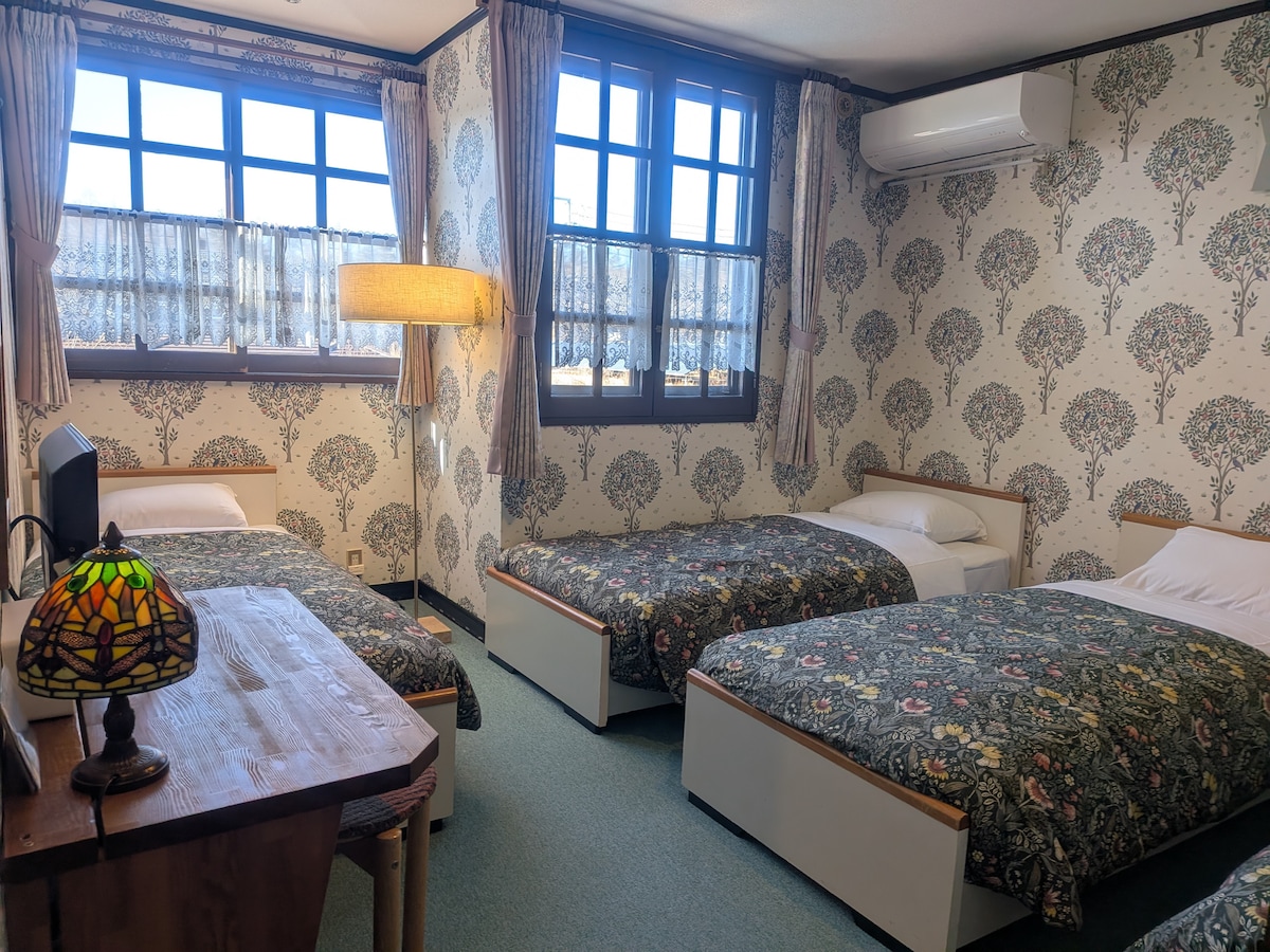 Autentisk semester med timmerhus! * Handskuren dynamisk timmerstuga * 3 sovrum, toaletter på varje plan * Parkering för 6 bilar * Värmare, luftkonditionering, elektriska filtar * Rena sängkläder (städade för proffs) * Grill vedspis <nov-maj> avgift tillkommer (3 000 JPY) * Trädgårdsanvändning fram till 20:00 * Tyst utomhus, inga lägereldar * OBS! Kan ha insekter, torr luft. Inte för dem som vill ha nya. * Husdjur OK (avgift tillkommer) * Informera oss: Gäster/husdjur #, sängkläder behöver, Njut av naturen♪Njut av skidåkning!