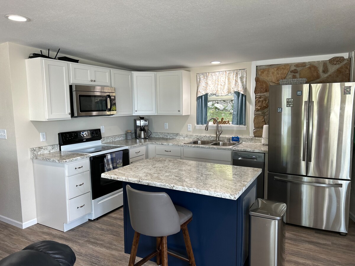 🍂❄️🌸 Solig tillflyktsort vid vattnet – Året runt semester vid sjön med privat brygga! Välkommen till din perfekta sjöutflykt! Oavsett om du jagar färgglada höstsolnedgångar, en mysig vinterretreat eller vår och sommar på vattnet har detta nyrenoverade hus vid sjön allt du behöver! Bra läge 18-mile marker, från bryggan kan du se Dog Days, Shootout & den nya Oasis Amusement Park. Nära Backwater Jacks, State Park, 1932 Reserve! Kort bilresa till Bagnell Dam Strip, Osage Beach och golfbanor.