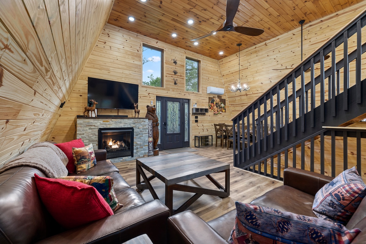 Helt ny LUXE Creekside Cabin med bubbelpool, eldstad