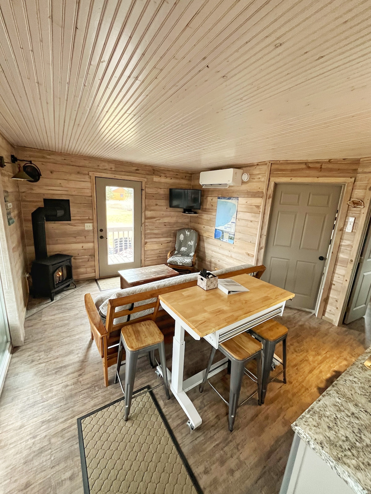 Söt liten timmerstuga i cederträ ligger 40 meter från Caribou sjön. Fullt utrustat kök, badrum med dusch, mysig säng och vardagsrum, få en bris från sjön på sommaren, och njut av golvvärme under den kalla årstiden. Denna året runt stuga för två är det perfekta stället för en romantisk resa. Simma, fiska, vandra, mountainbike på sommaren, jaga på hösten, korsa län skidor Suomi-kullarna på vintern och svampjakt och fiska på våren. Ett bra ställe att komma bort från allt.