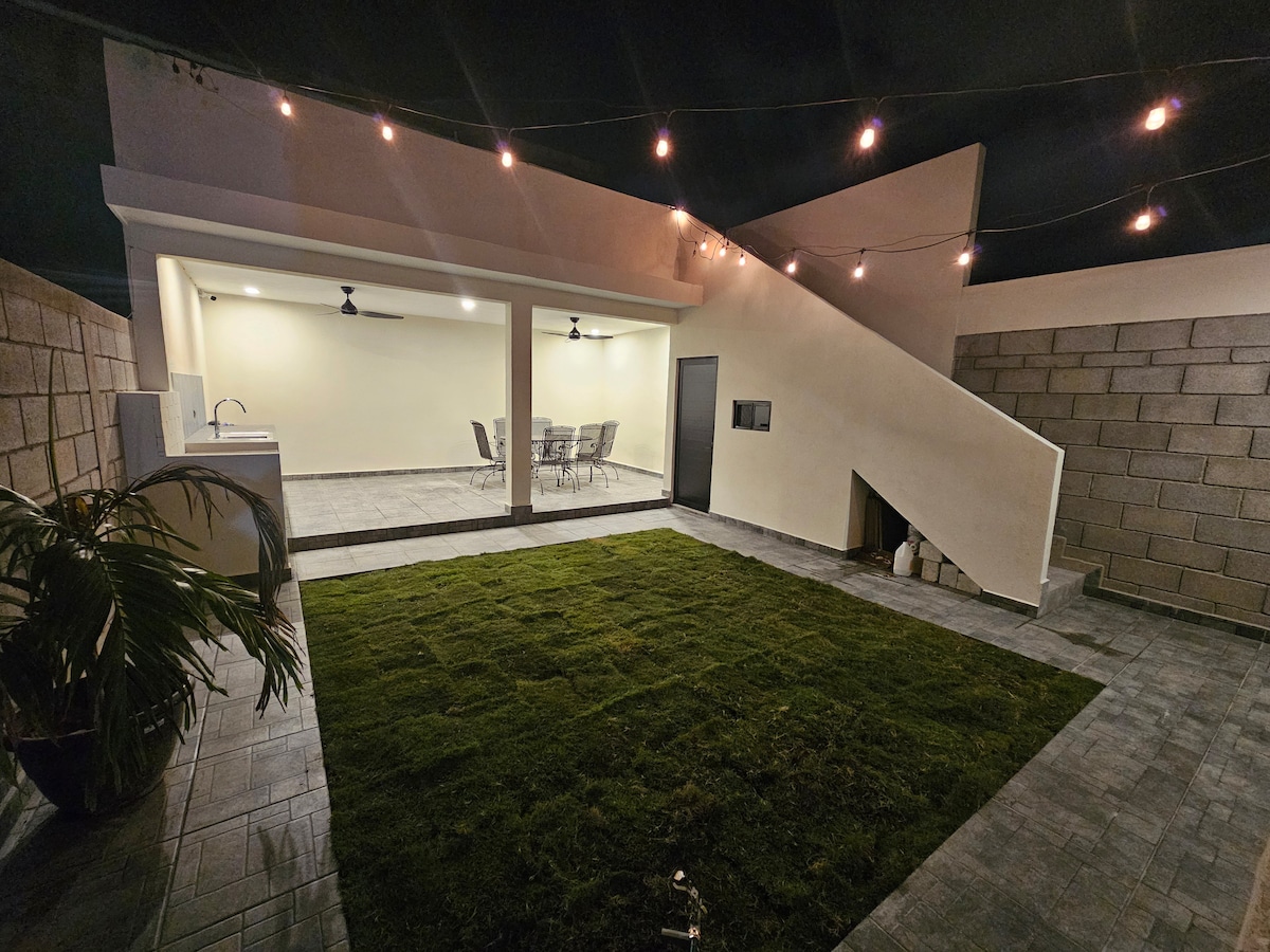 Njut av detta hus med mycket enkel tillgång till alla delar av staden, beläget 6 minuter från flygplatsen, 5 minuter från västra ringvägen, 3 minuter från Tampico-Mante-avenyn, 15 minuter från Altamiras industriella korridor, 25 minuter från den historiska stadskärnan, 20 minuter från Miramar-stranden, nära butiker (Oxxo, Soriana, Waltmar, etc.) har en privat parkering för 2 bilar, 2 1/2 badrum, utrustat kök, kabel-TV och internet, trädgård med grill, hängmatta och trädgårdsbord