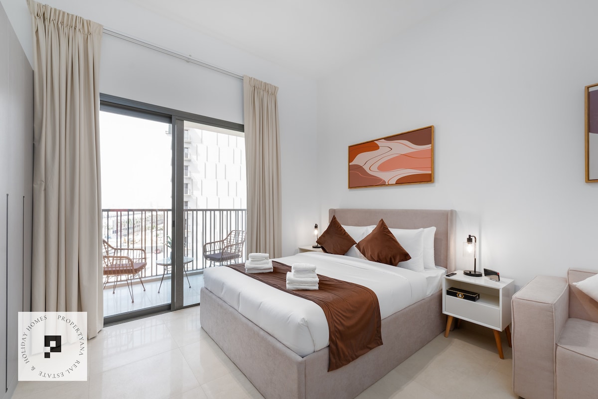 Njut av en elegant upplevelse på detta centralt belägna boende. Koppla av och varva ner i denna fridfulla och eleganta boning. Platsen är full av funktioner och ger dig möjlighet att bo i det gröna samhället med utsikt över Burj Khalifa, härlig lägenhet med 1 sovrum med alla faciliteter. Njut av det lugna frodiga gröna landskapet Platsen ☑️10 minuter till Burj Khalifa & Dubai Mall och SHZ Road ☑️14 minuter till Dubais flygplatser ☑️10 minuter till Ras Al Khor Wildlife Sanctuary ☑️18 minuter till Palm Jumeirah