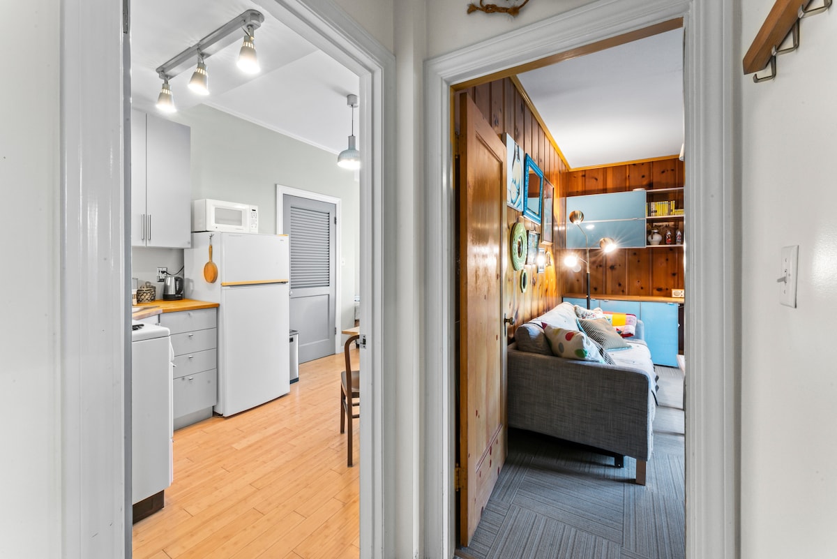 Stor, ljus, tyst, privat 2 sovrumslägenhet/gästsvit med delat badrum (toalett och handfat i ett rum, badkar/dusch och handfat i andra), kokvrå och tak upp till 16'. Vi har arbetat med detta utrymme under de senaste 2 åren för att få detaljerna precis rätt, inklusive handbyggda möbler och konst av lokala konstnärer. Ovanför Mission är denna lägenhet ett unikt utrymme byggt på vinden i ett stort Edwardianskt hus som drivs av konstnärerna Laurel Roth Hope och Andy Diaz Hope.