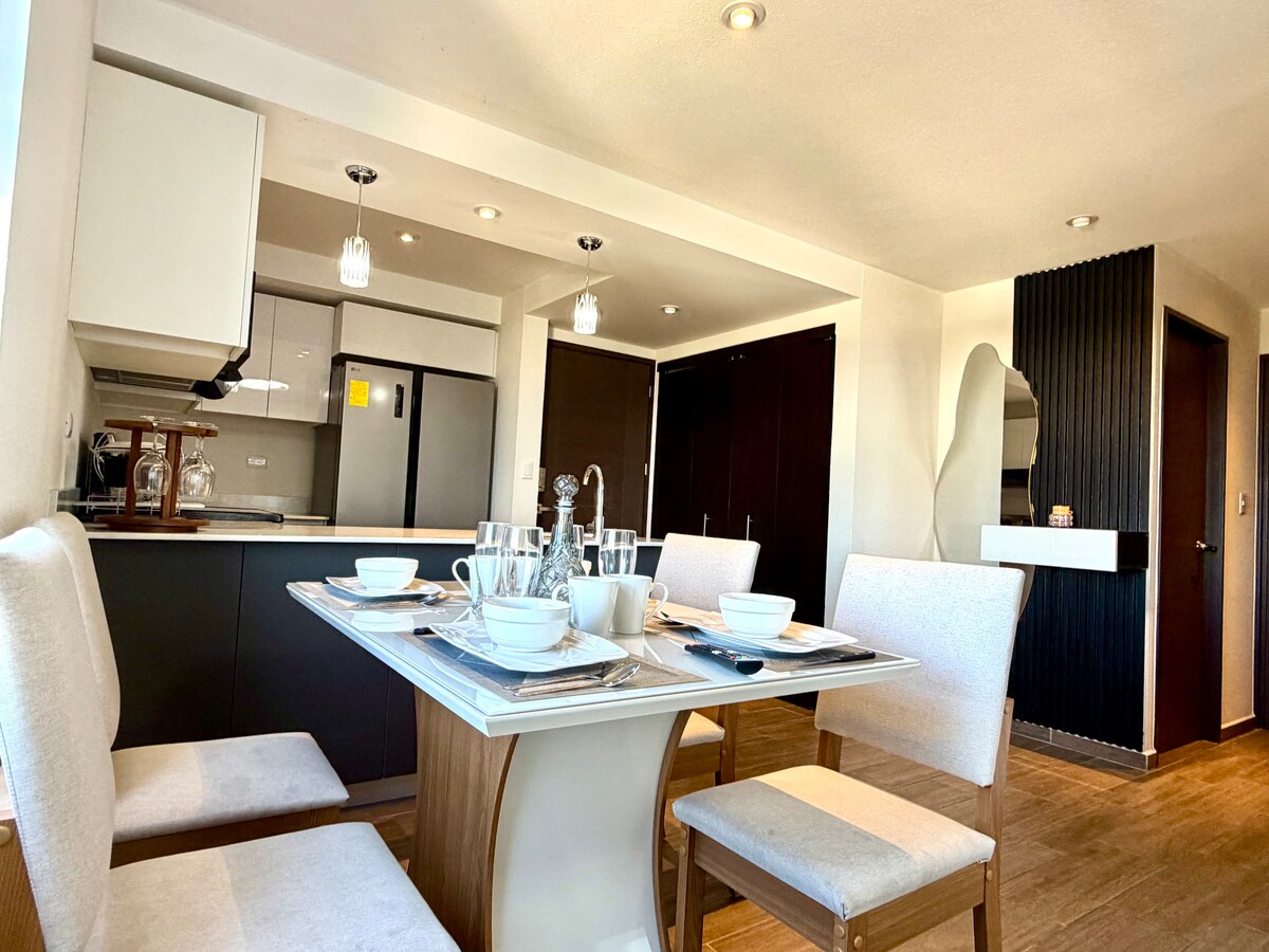 Välkommen till min lyxiga 3 + 2 1/2 lägenhet i hjärtat av zon 10, Guatemala City! Detta fantastiska ställe erbjuder den perfekta blandningen av komfort, bekvämlighet och elegans för din vistelse i den livliga huvudstaden. Beläget i ett av de mest eftertraktade områdena har min ägarlägenhet en rymlig layout med tre sovrum och två och ett halvt badrum, vilket garanterar gott om utrymme för upp till sex gäster. Varje sovrum är vackert möblerat med mysiga sängar, vilket ger en lugn tillflyktsort efter en dag av att utforska staden.
