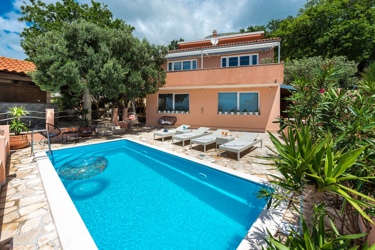Denna elegant inredda lägenhet ligger i den charmiga villan och har tre sovrum, två badrum, stor terrass med jacuzzi utanför, ett fullt utrustat kök (tvättmaskin, mikrovågsugn, brödrost, kaffebryggare, vattenkokare), matplats och en sittgrupp. Fastigheten kommer med en magnifik utsikt över Adriatiska havet och öarna. Luftkonditionering i hela lägenheten. Gratis Wi-Fi och toalettartiklar.