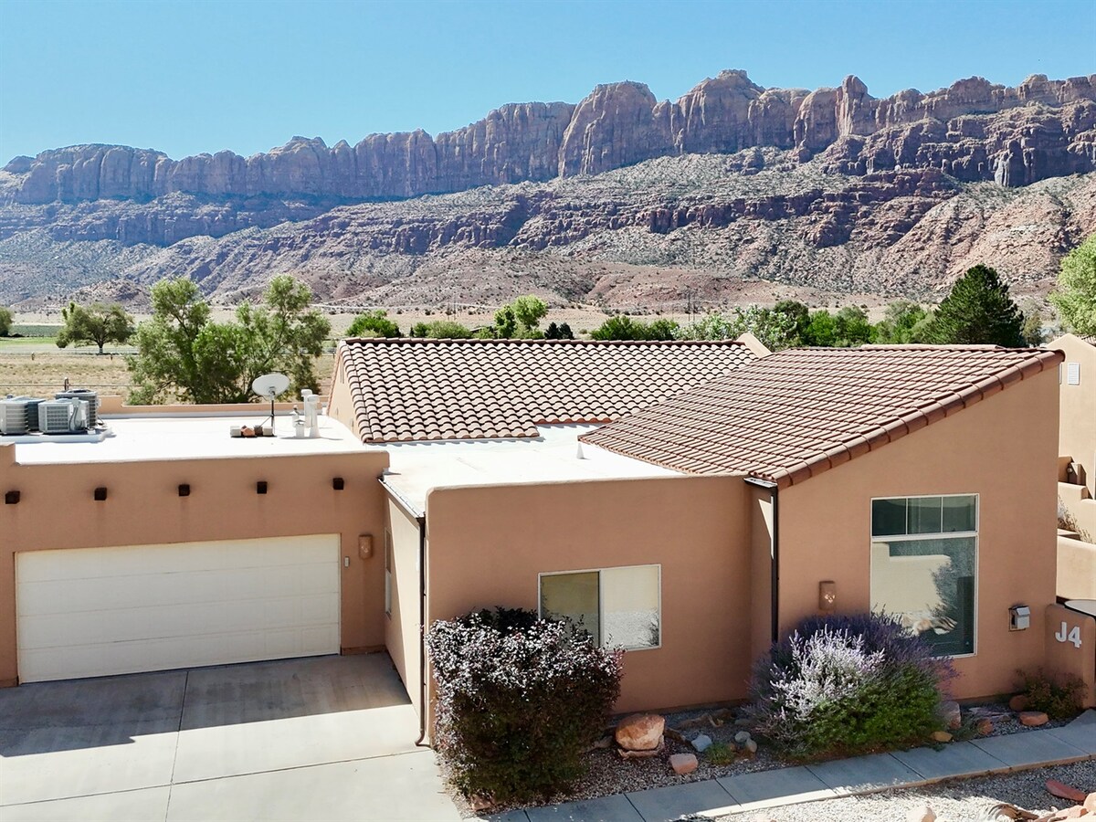 Välkommen till Red Rock Garden, vårt 1800 kvadratmeter stora 3BR, soldrivna 3 Bath townhome, i ett avskilt, exklusivt spanskt dalområde, inbäddat mellan en av de berömda Moab rock "fenor" och en av landets mest pittoreska golfbanor. Efter en dag av vandring, forsränning, mountainbike, besök i nationalparkerna, eller utforskning av de natursköna underverken i Moab-området i ditt terrängfordon, kan du koppla av i vår ökenreträtt med alla bekvämligheter hemifrån, inklusive en privat bubbelpool.