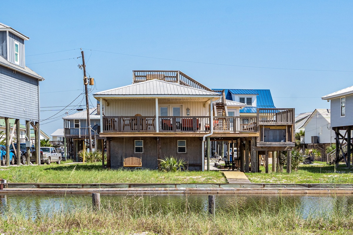 Min ett sovrum och ett och ett halvt badrum bungalow ligger i Bay to Breakers som är en privat gata som erbjuder tillgång till stranden till viken, gemensamt poolområde och en lång fiskebrygga på Mobile Bay. Min enhet har ett sovrum på övervåningen med balkong med fantastisk utsikt över viken. Köket är välutrustat med bänkmatplats, WiFi, kabel-TV i vardagsrummet och sovrummet och tvättmaskin/torktumlare. Det finns en gasolgrill med uteservering. Strandstolar och paraplyer för gäster att använda.