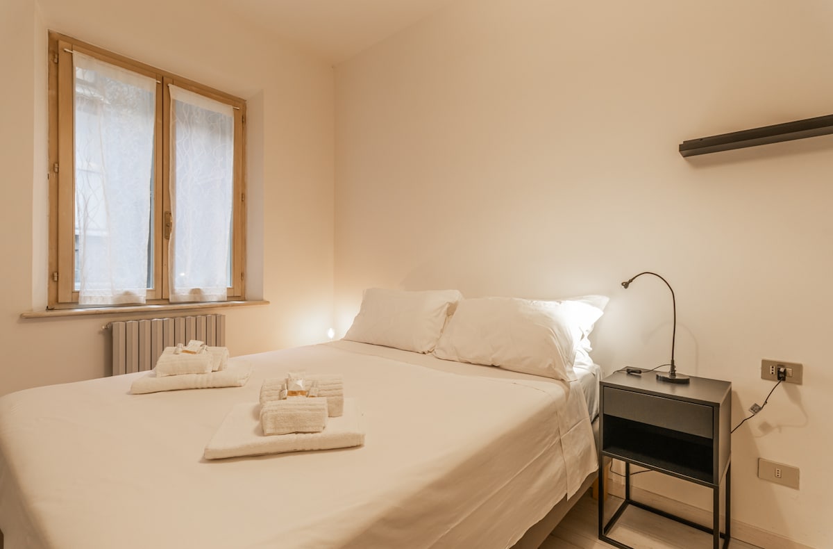 Ett unikt och historiskt hus, förberett med fokus på varje detalj, strax utanför stadens centrum. Lägenheten ligger på bottenvåningen och har en härlig liten privat uteplats som får dig att känna dig som hemma! Parkeringen är gratis, det finns wifi, Netflix, ett fullt utrustat kök och allt du behöver för en perfekt vistelse! Du kommer att vara 11 minuters promenad från Piazza Grande och bara några steg från allt det bästa av Modenese kök!