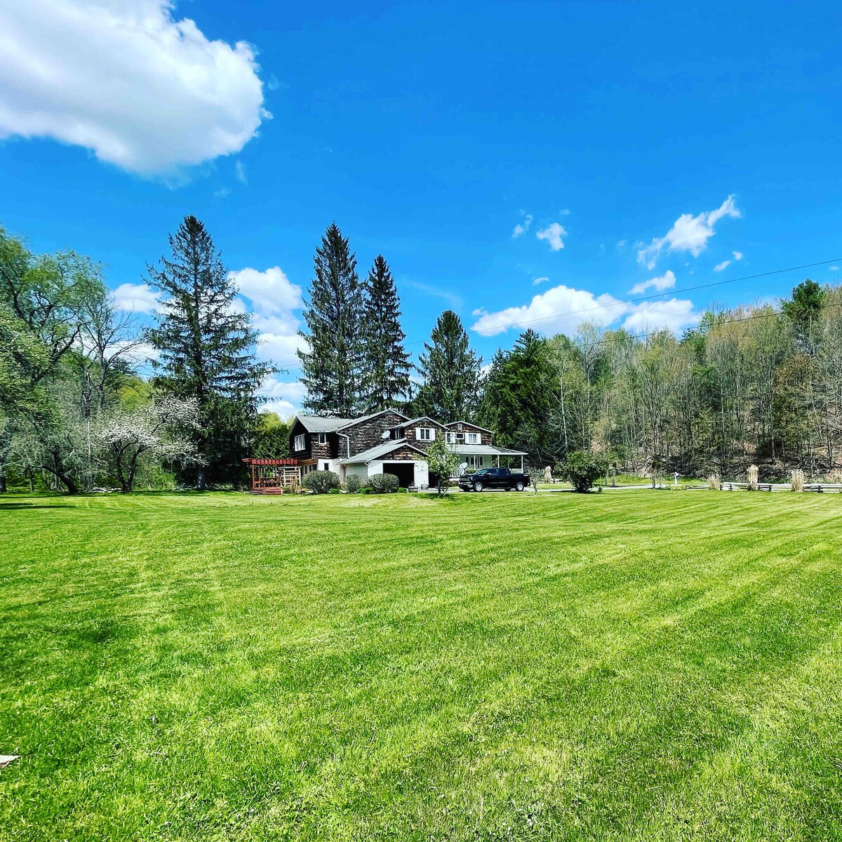 Välkommen till vackra Catskills! Vår vackra A-Frame Chalet ligger på 6 hektar privat skogsmark med härlig utsikt över naturen. Kom och bo i den friska luften! Stugan är fullt utrustad för att avnjutas under alla årstider! Koppla av under den täckta uteplatsen i alla väder (regn eller snö) i BUBBELPOOLEN eller slappa på utomhussektion medan du tittar på lite NETFLIX/YOUTUBE-TV året runt på vår UTOMHUS-TV, spela ett spel POOL i vårt loft på övervåningen, eller ta en vandring genom vårt privata SPÅR!!