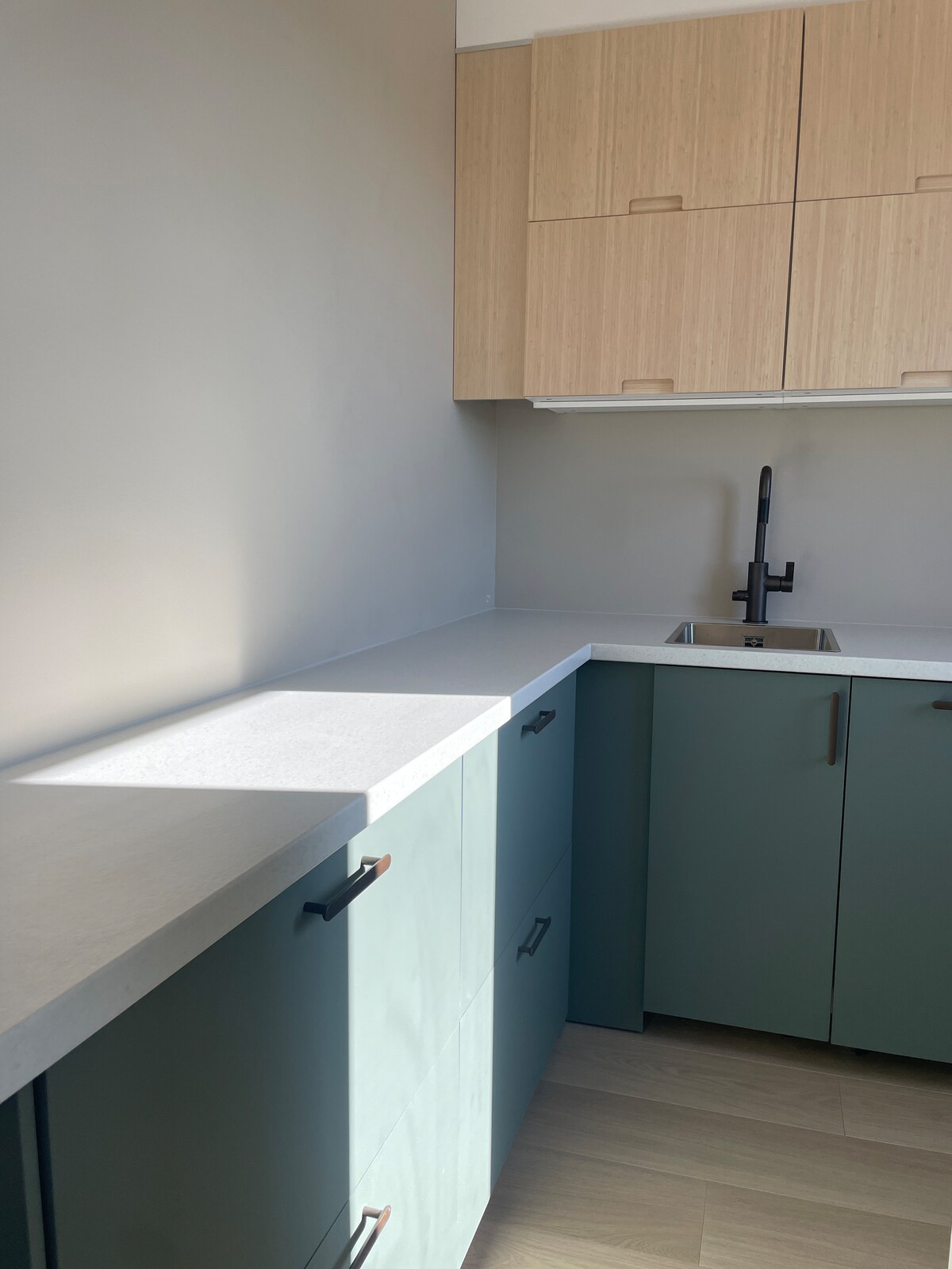 Ny leilighet på 55 m2 med to soverom. Balansert ventilasjon. Termostat på alle rom. Romslige dobbeltsenger (180 cm bredde) på begge soverommene. Sovesofa med bredde på 140 cm kan res opp til en eller to personer i tillegg. Sjøutsikt og utgang til hage. Rolig og fredelig nabolag med lekeplass og turområder like ved. Kort vei til butikk og bussholdeplass. Det tar omkring 20 minutter med buss til sentrum.