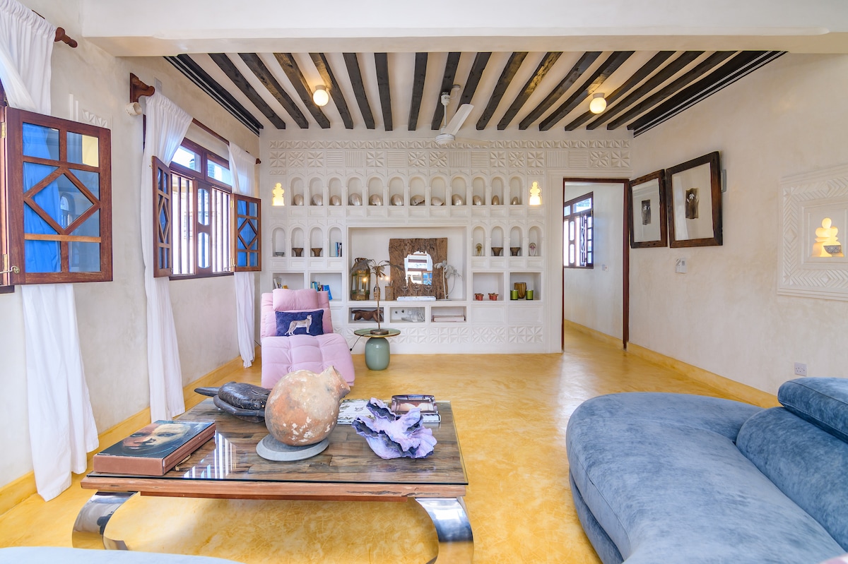 Set along Usita wa Mui, the main street of Lamu Old Town, this flat is the first project of a graduate architect and artist (the host himself). Housed in a 700-year-old Swahili home, it combines history, craftsmanship, and art. The space doubles as a working studio and small gallery with mixed-media works. Facing the lively street, it carries the hum of daily life and stories below — a true immersion into the spirit and creativity of Lamu.