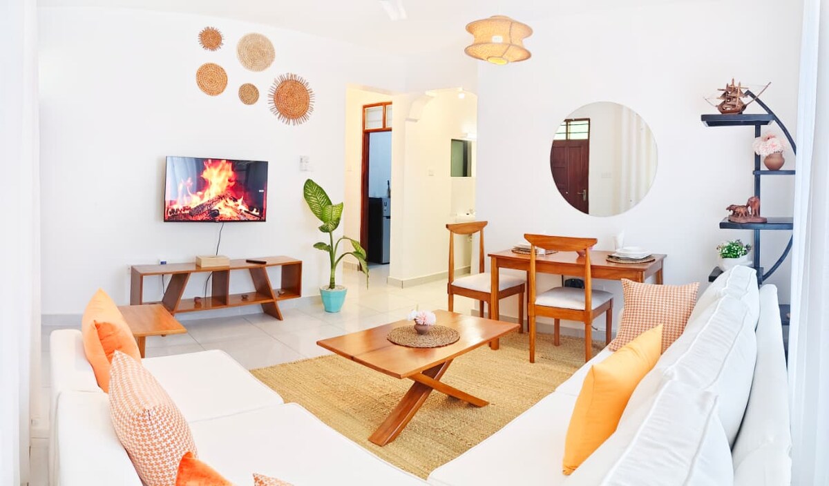Välkommen till Vale Residence – en modern lägenhet med 1 sovrum i hjärtat av Nyali, Mombasa. Bara 5 minuter från stranden, det är perfekt för strandälskare, familjer, vänner eller distansarbetare. Njut av luftkonditionering och fläktar i varje rum, snabbt Wi-Fi, ett fullt utrustat kök och säker parkering. Gå till de bästa restaurangerna, galleriorna och nattlivet. Din perfekta kustresa väntar! OBS: Lägenheten har ingen hiss och kunden ska fylla på elpolletter när han eller hon använder dem.