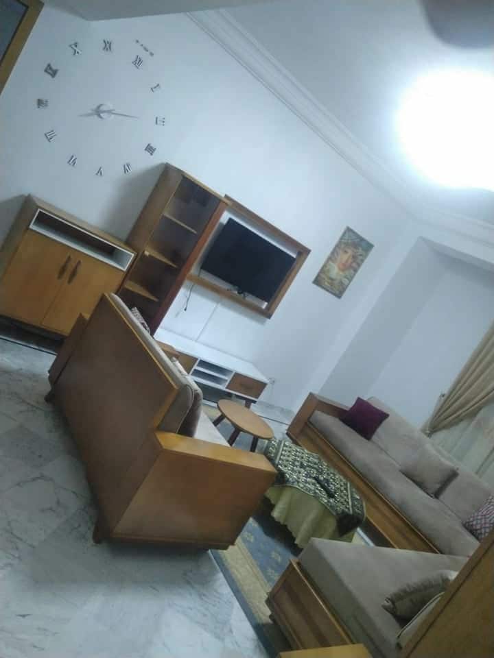 Stor, ljus och väl ventilerad S+1 lägenhet, perfekt för familjer eller par, beläget i Monastir, bara 5 minuters promenad från stranden. ✔ Luftkonditionering ✔ Snabbt wifi ✔ Altan med öppen utsikt Parkeringsplats ✔ ✔ Lugnt och säkert grannskap Lägenheten städas noggrant före varje ankomst för att säkerställa en bekväm och trevlig vistelse. Perfekt för en avkopplande semester nära havet 🌊