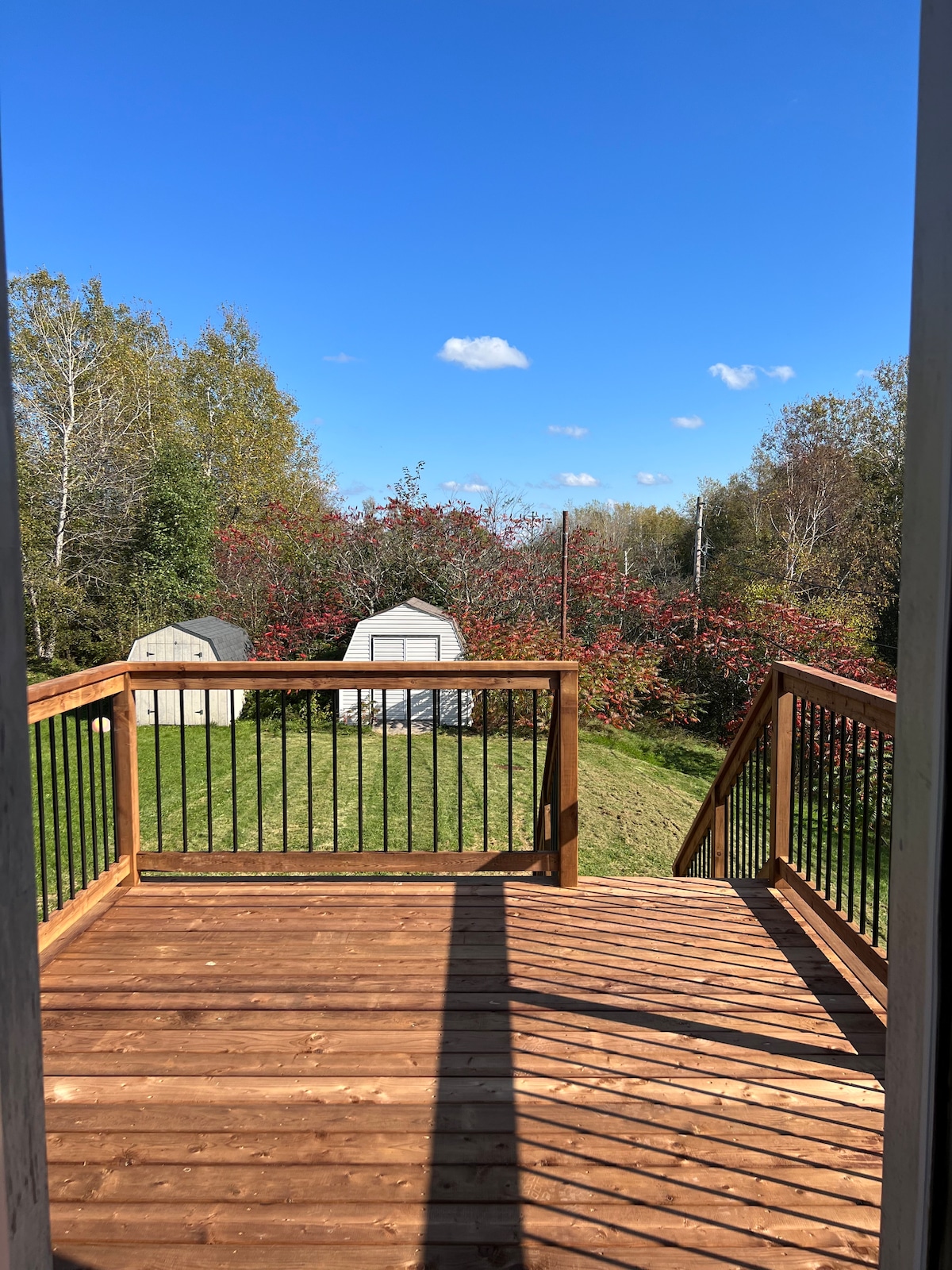 Vår våning, lägenheten är separat från huset och har öppet koncept (600 kvadratfot) boende. Vardagsrum med TV och öppen spis, sovrum, kök med ö och matplats, skrivbord eller fåfänga, tvättmaskin och torktumlare, badrum med stor sittdusch. Lugnt område, massor av stigar, shopping och äventyr i närheten. Magic Mountain, Parlee Beach, 5-8 min till Downtown Moncton — Avenir Centre. 15 min till flygplatsen. 30 min till Shediac eller Hopewell Cape Rocks, 1,5 tim till Fundy National Park. Nyckelkodstillträde