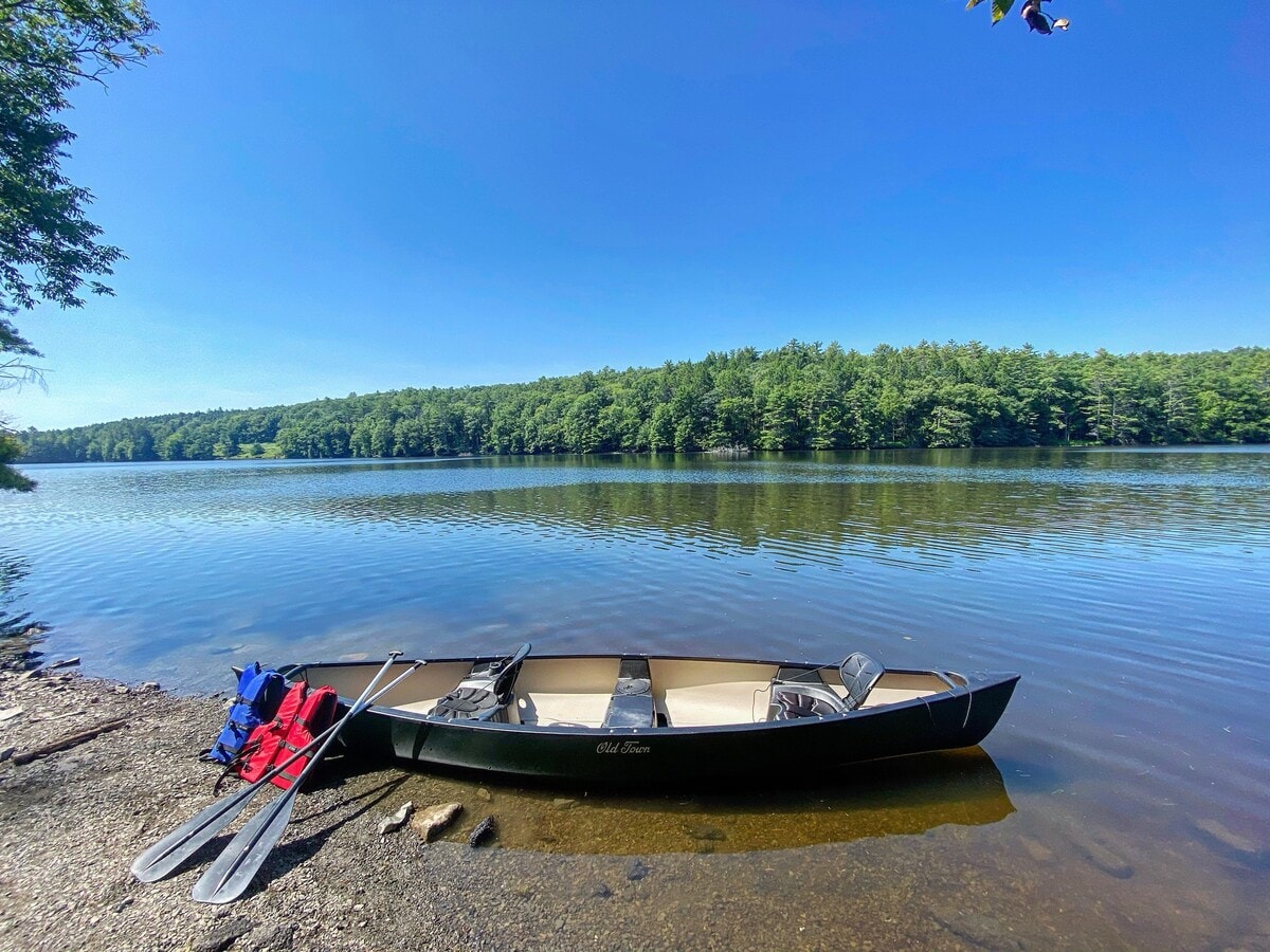 This beautiful lakefront cabin is located at the end of a peaceful road adorned with tire swings and wildflowers. It is situated in a private community on a SMALL 3 acre lake, offering the perfect setting to enjoy morning coffee on the dock, taking refreshing afternoon swims in the lake, going for evening kayaking rides, and stargazing. You can unwind in our hammock nestled amidst the ferns next to a tranquil stream. We offer 2 kayaks and 1 SUP for your enjoyment. Best of all, 2 hrs from NYC.