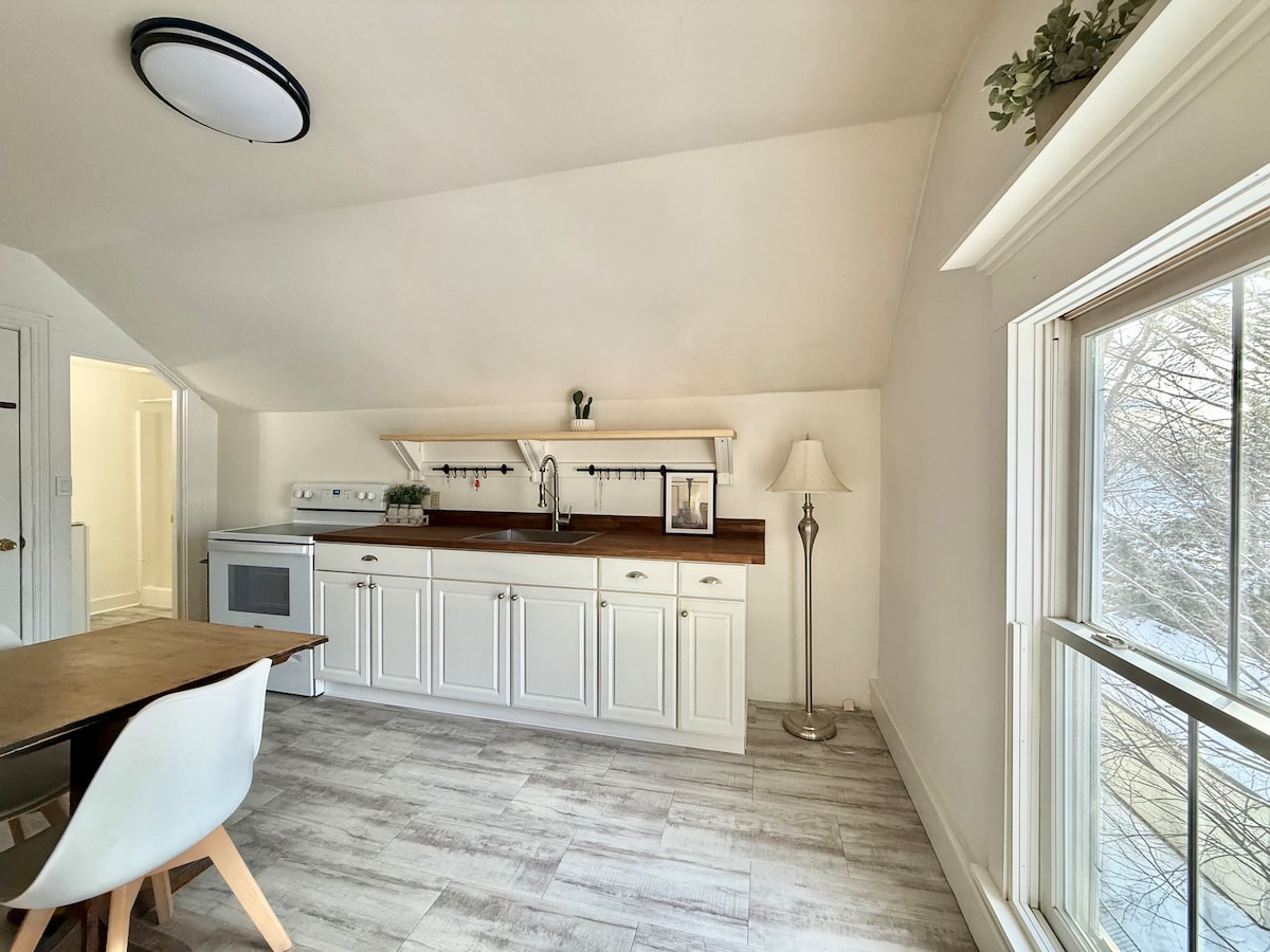 Njut av en mysig skeppsbyggarstuga i Bath, Maine. Denna pittoreska lägenhet som är ansluten till ett familjehem har egen ingång och innehåller ett sovrum, badrum, kök och ett vardagsrum med antika detaljer som speglar dess 200-åriga historia. Bara 15 minuters promenad till historiska centrum Bath, 3 minuters bilresa till Thorne Head Preserve och 25 minuters bilresa till Reid State Park och Popham Beach. Kom och uppskatta allt MidCoast Maine har att erbjuda! OBSERVERA: Denna lägenhet har branta trappor!