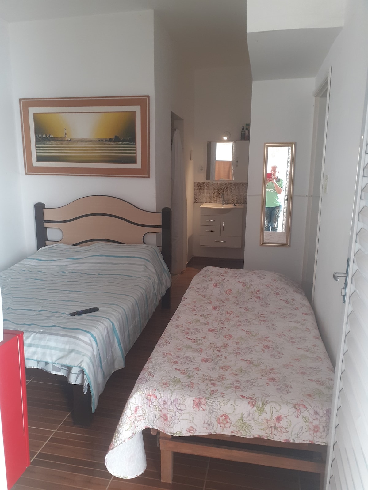 Du kommer att trivas på denna plats som har ett stort vardagsrum, kök med allt du behöver för att laga mat, rymligt sovrum med garderob, en dubbelsäng och en enkelsäng, trevligt badrum och enskild garage med grind. Du kommer också att ha tillgång till wifi, TV, sängkläder och andra bekvämligheter. Platsen har en kamera på utsidan (balkongen) för att garantera total säkerhet för ditt boende! Välkommen!
