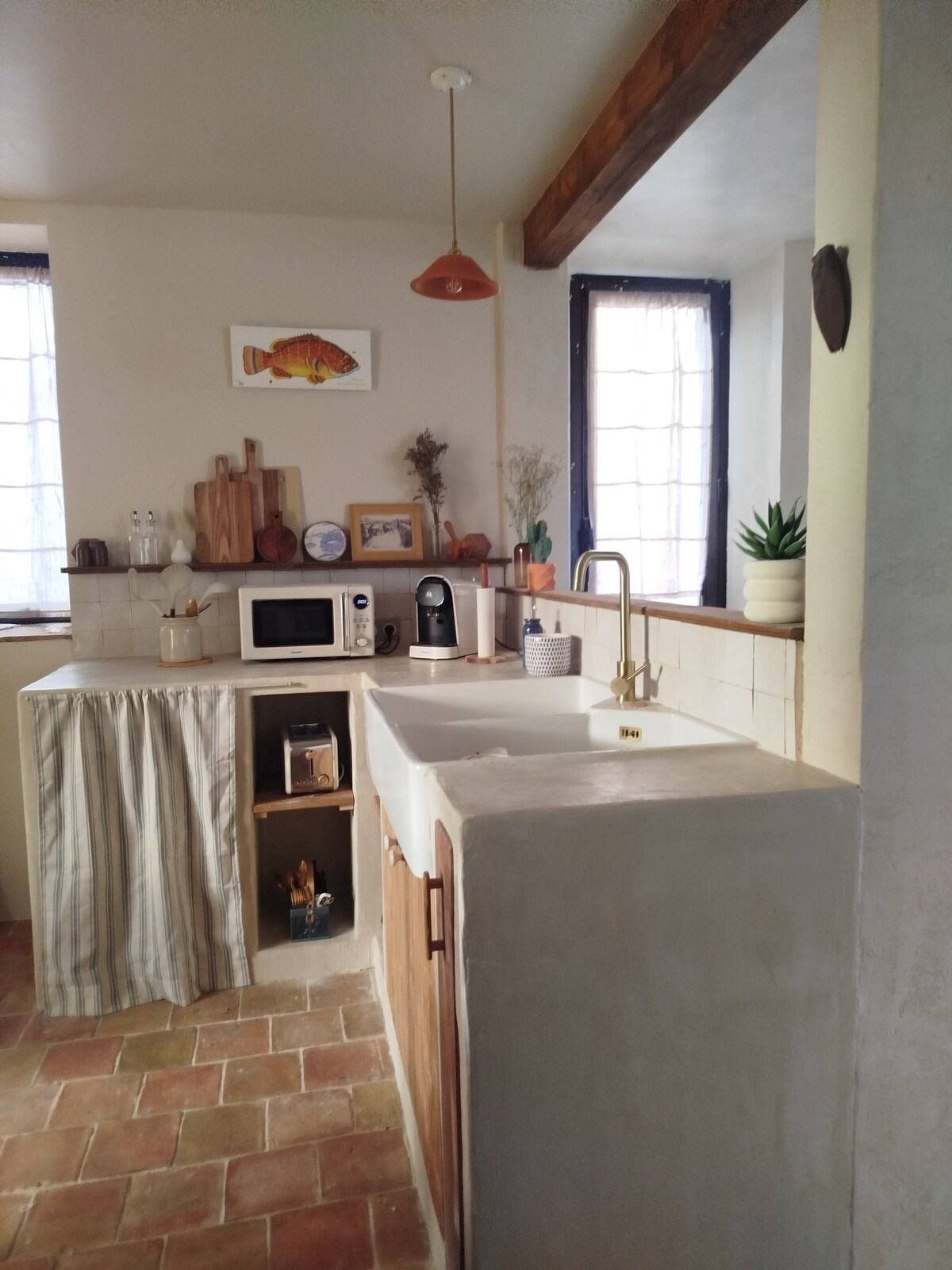 Upptäck vår fristad vid havet! Välkommen till vår charmiga stuga som ligger på Almanarre-stranden i Hyères. Utformad för att rymma upp till 6 personer, har vi med hjärtat skapat ett utrymme som kombinerar komfort och äkthet, och erbjuder en härlig upplevelse bara några steg från vattnet. Du kommer att vakna av vågornas mjuka skvalp, redo att njuta av en solig dag :) Det lilla extra: direkt tillgång till vattnet nedanför stugan, vilket också möjliggör en avfärd i wingfoil!