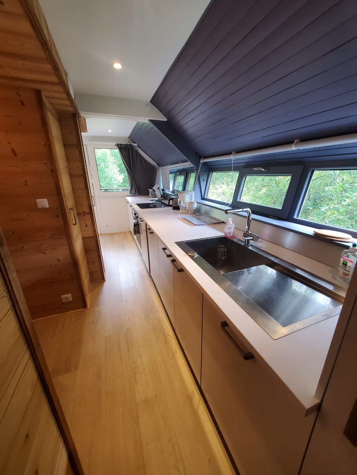 För en natt, en helg eller en vecka, kom och ladda batterierna i en varm trästuga, på stolpar och med alla bekvämligheter! Du kommer att njuta av en para-hotelltjänst, sängen (queen size) är bäddad, handdukar tillhandahålls, städning och desinfektion av rummet ingår. Det stora badkaret lovar dig stunder av avkoppling. Köksområdet gör att du kan vara självständig.
