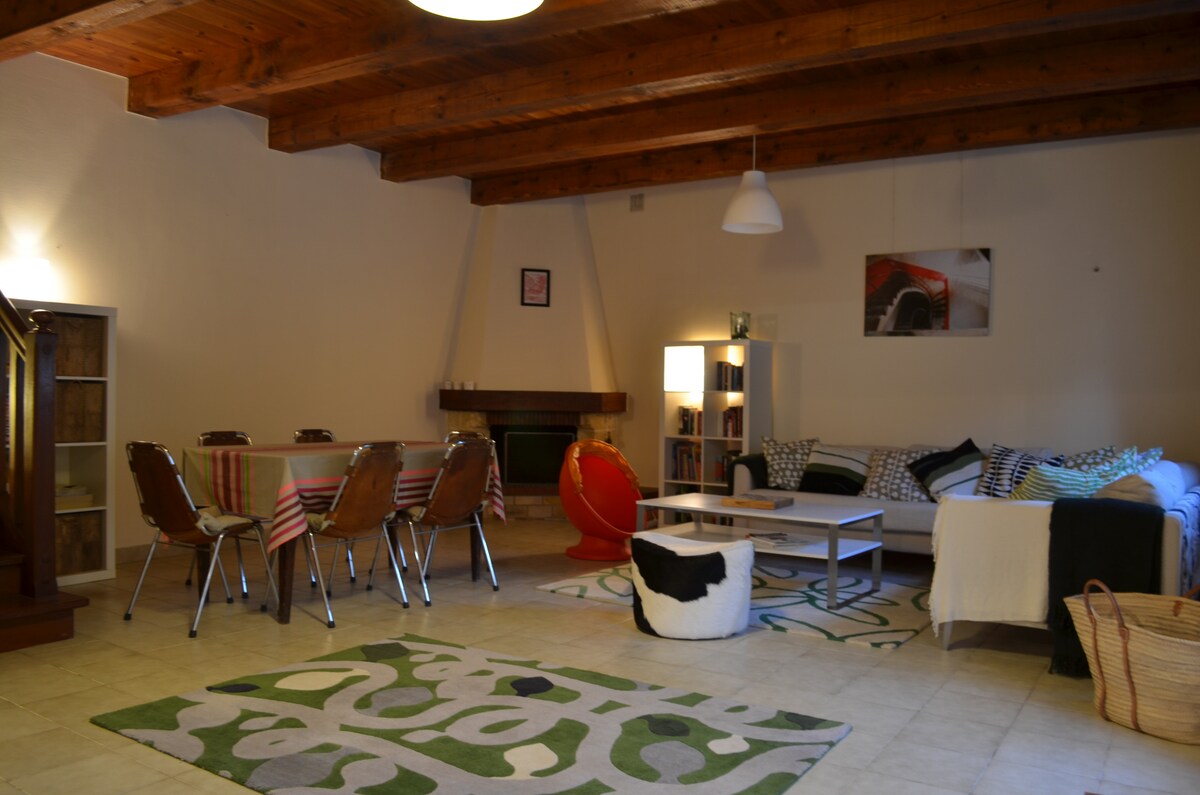 Villa inbäddad under tallarna mitt i en vingård. 10 minuters bilresa från Mèze och Thau-lagunen. Du kommer att njuta av den privata poolen för att svalka dig, en stor terrass och vandringsleder för promenader. Tre sovrum med dubbelsängar och ett kontor med en dubbelsäng. Du kommer att ha böcker, en videoprojektor i vardagsrummet och brädspel för att liva upp dina kvällar. Ett mycket rymligt och charmigt kök är perfekt för att vara värd för måltider med vänner.